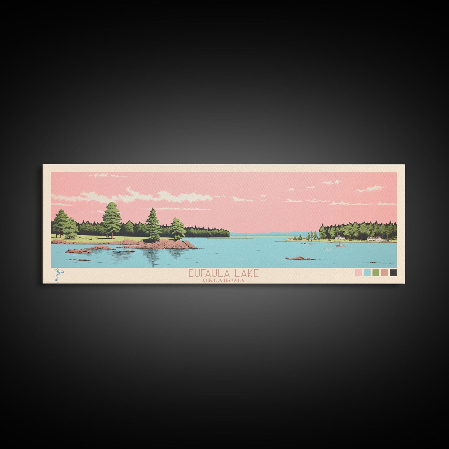 Eufaula Lake Oklahoma Framed Canvas Print, Panoramic Art, Midcentury Modern, Pop Art, Living Room Wall Art, Travel Poster, Nature Art
