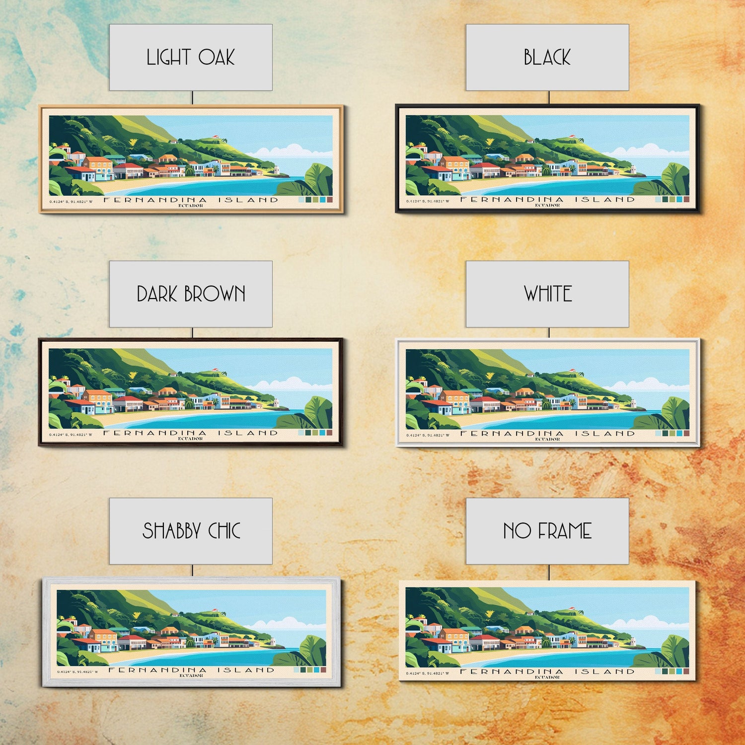Fernandina Island, Ecuador Panoramic Beach Print, Vacation Gift, Ecuador Wall Art, Framed Canvas Print, Framed Beach Painting