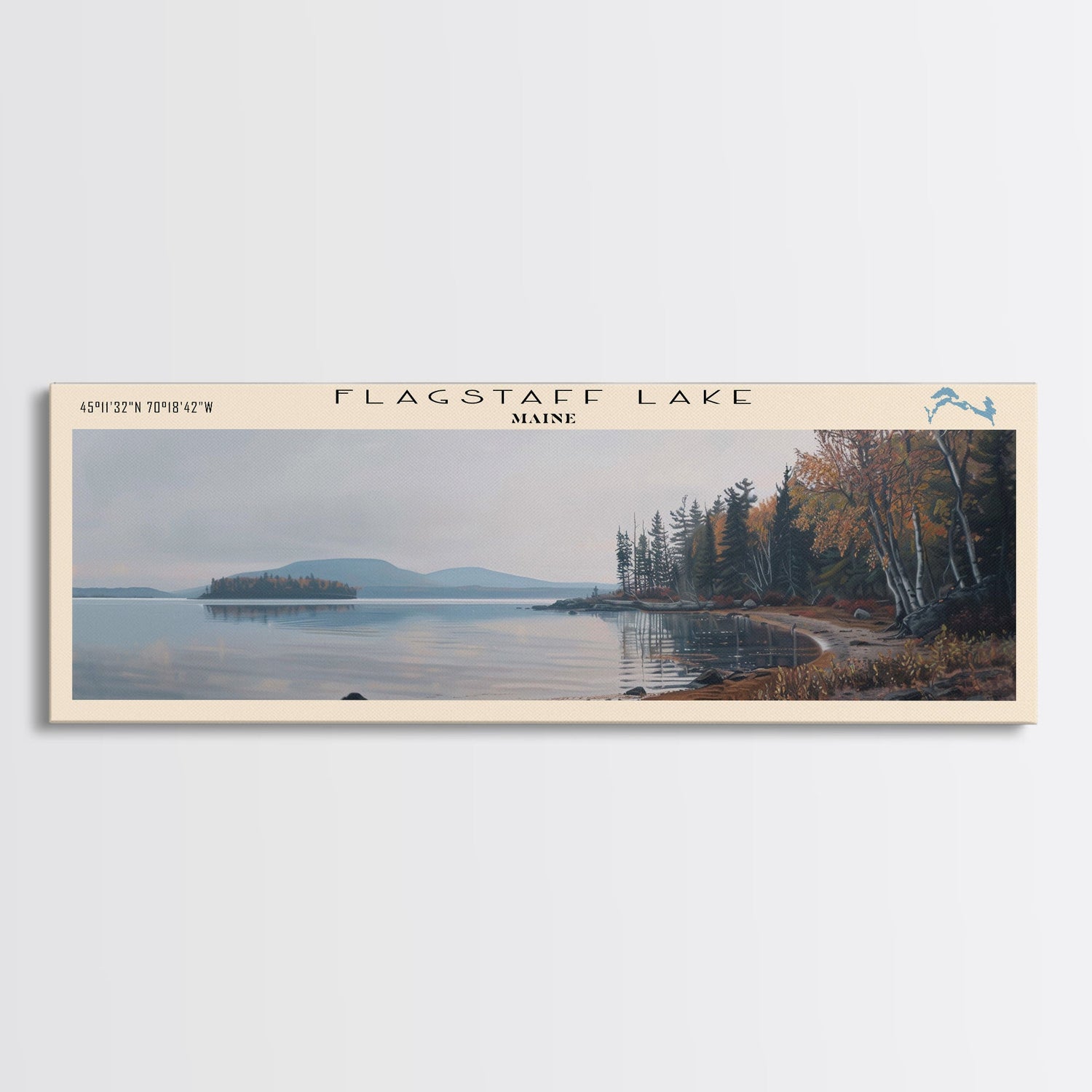 Flagstaff Lake Maine Framed Canvas Print, Panoramic Lake House Decor, Wall Art, Travel Poster, Peaceful Lake Painting, Nature Art