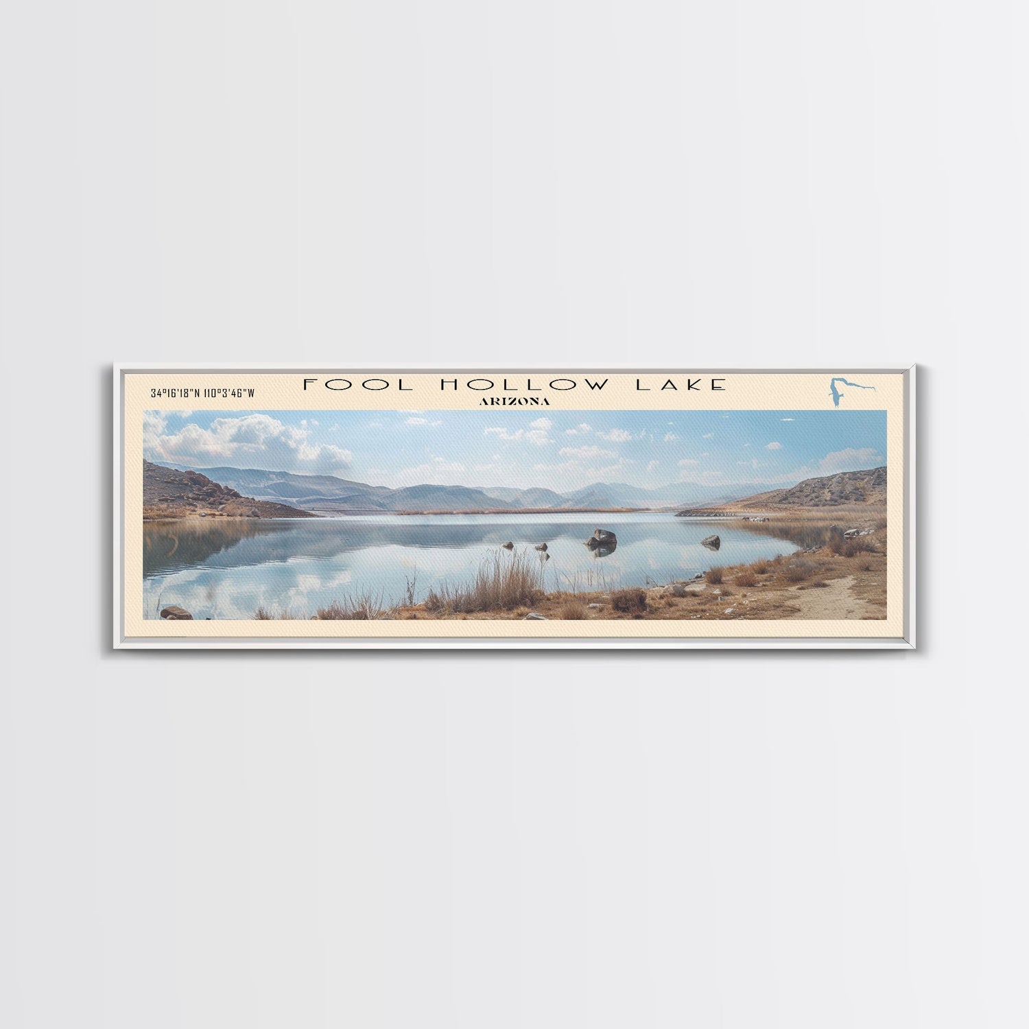 Fool Hollow Lake Arizona Framed Canvas Print, Panoramic Lake House Decor, Wall Art, Travel Poster, Majestic Lake Painting, Nature Art