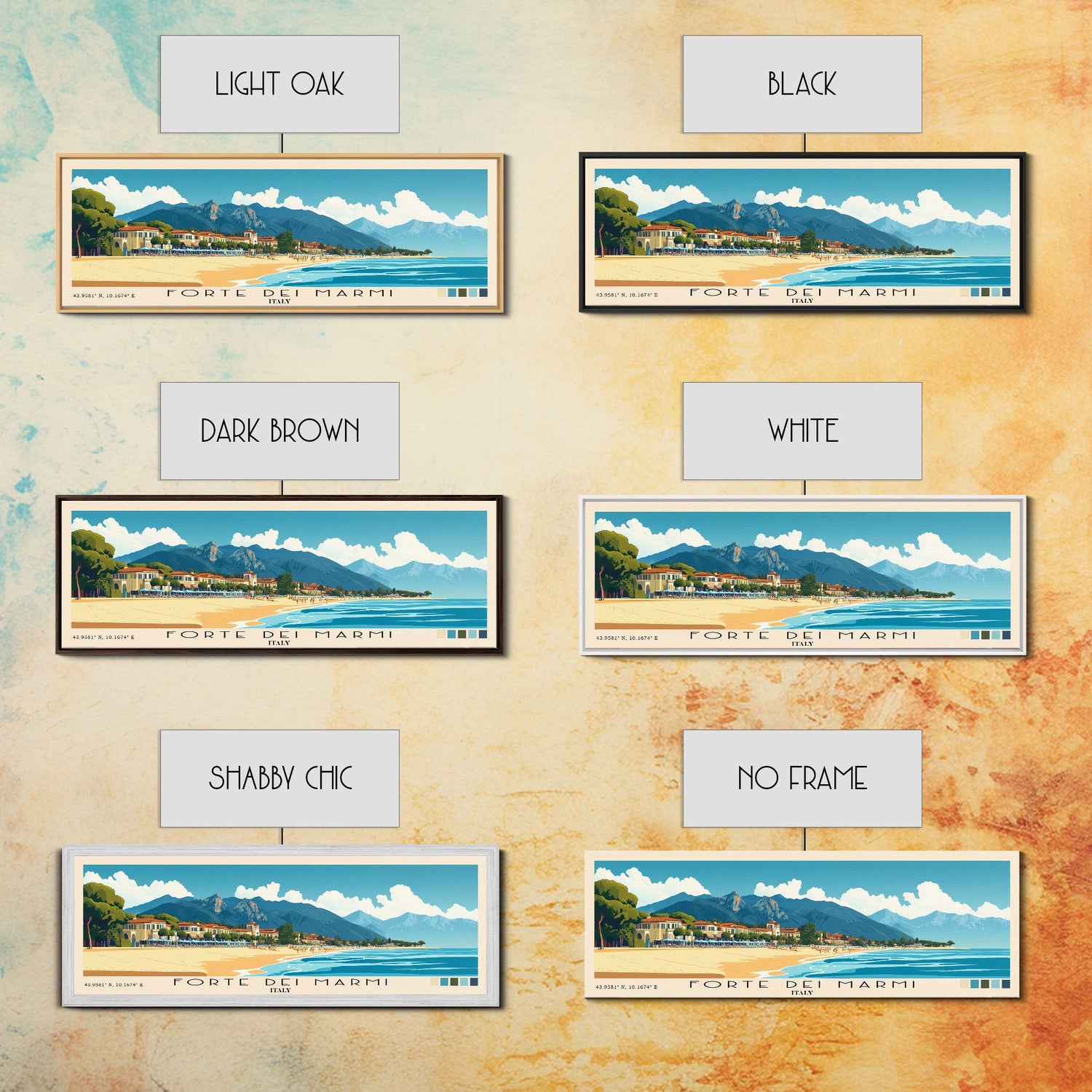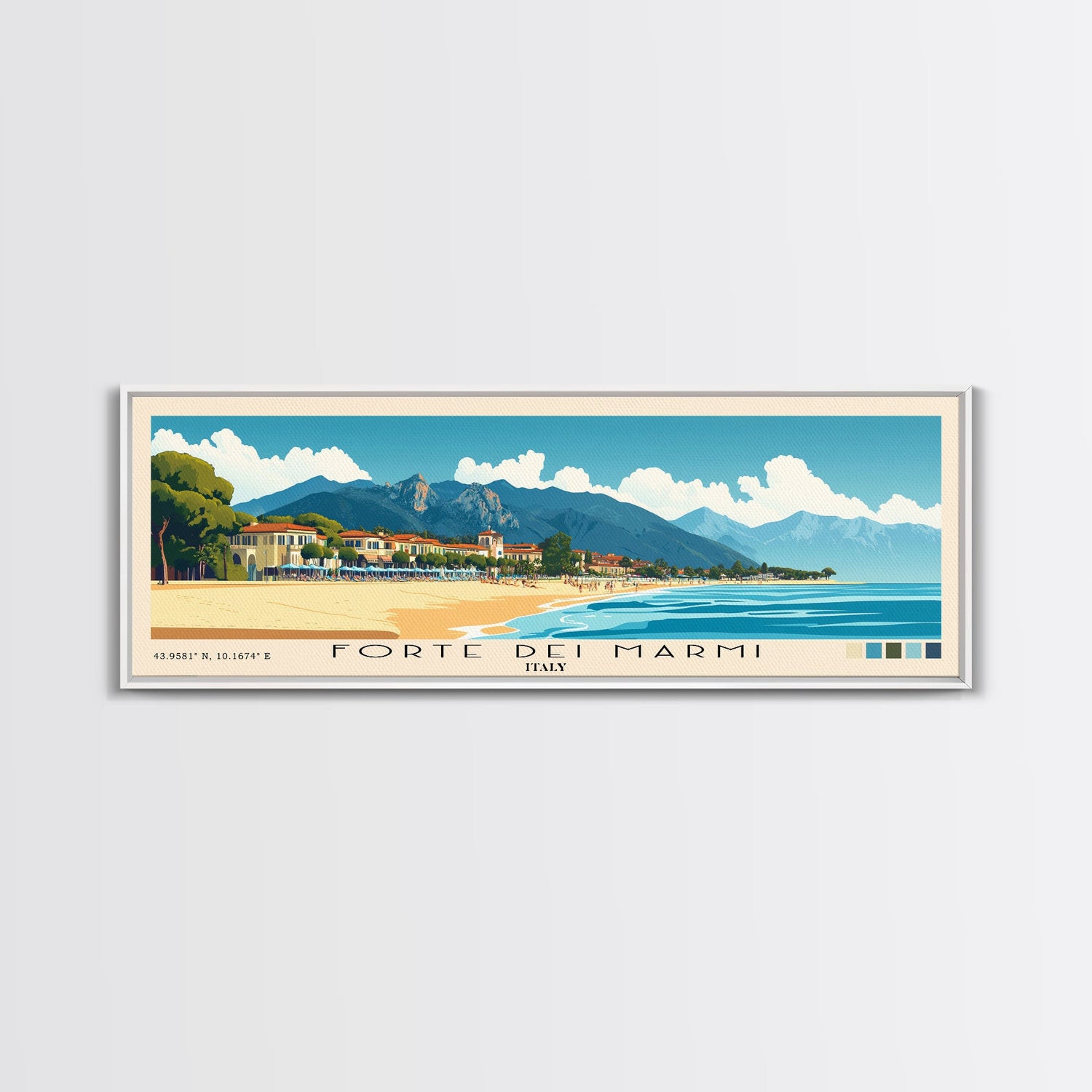 Forte dei Marmi, Italy Panoramic Beach Print, Vacation Gift, Italy Wall Art, Framed Canvas Print, Framed Beach Painting