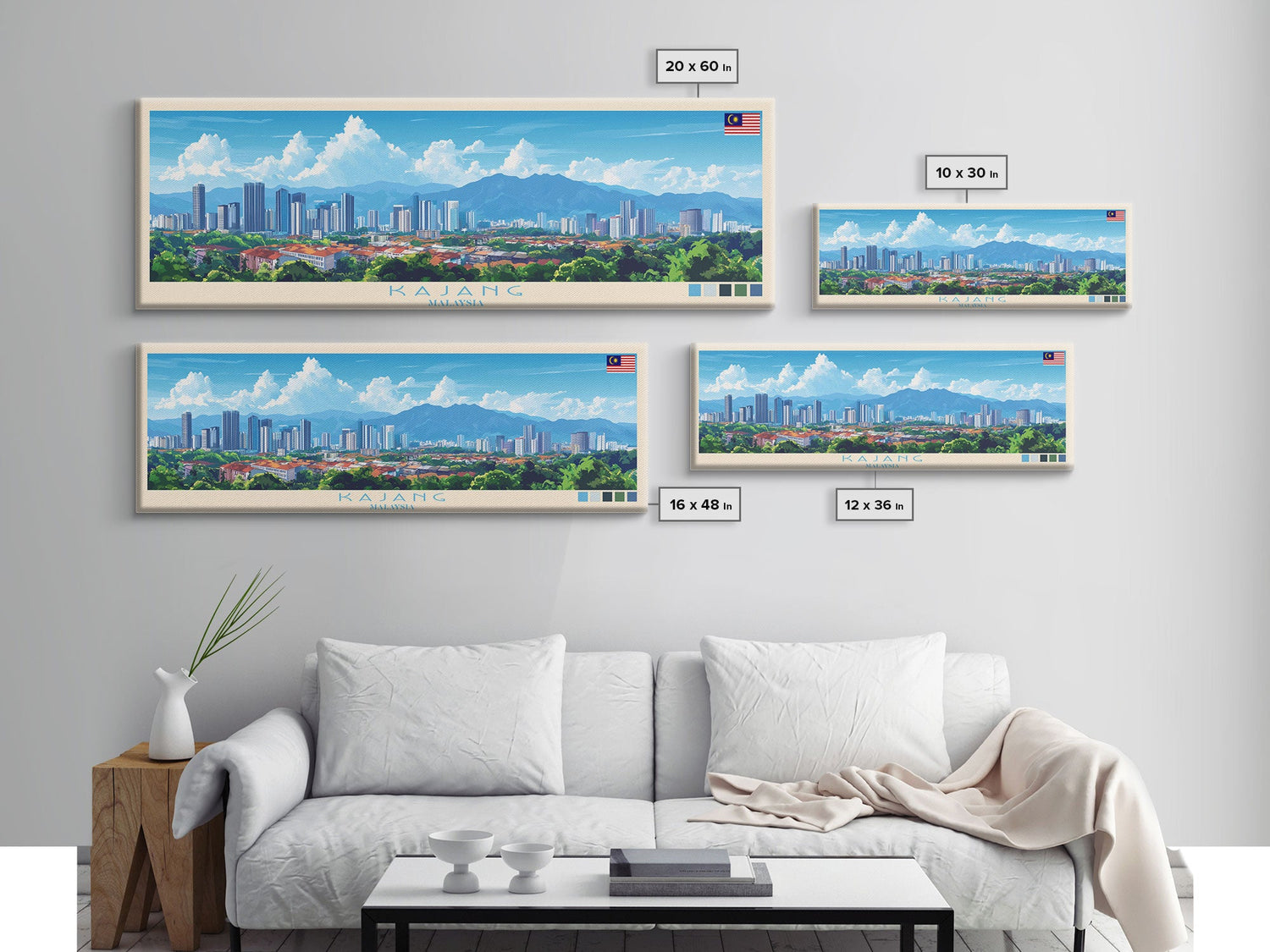 Kajang, Malaysia Panoramic Travel Poster Canvas Print, Kajang, Malaysia Painting, Malaysia Art, Kajang Panoramic Travel Art, Travel Painting