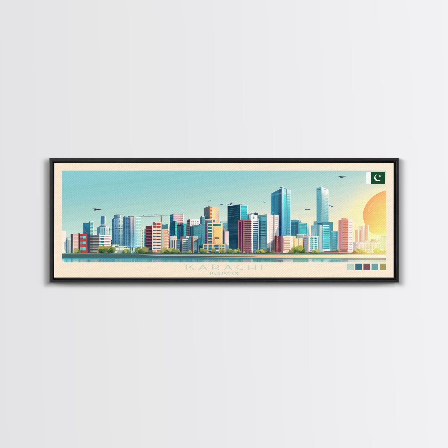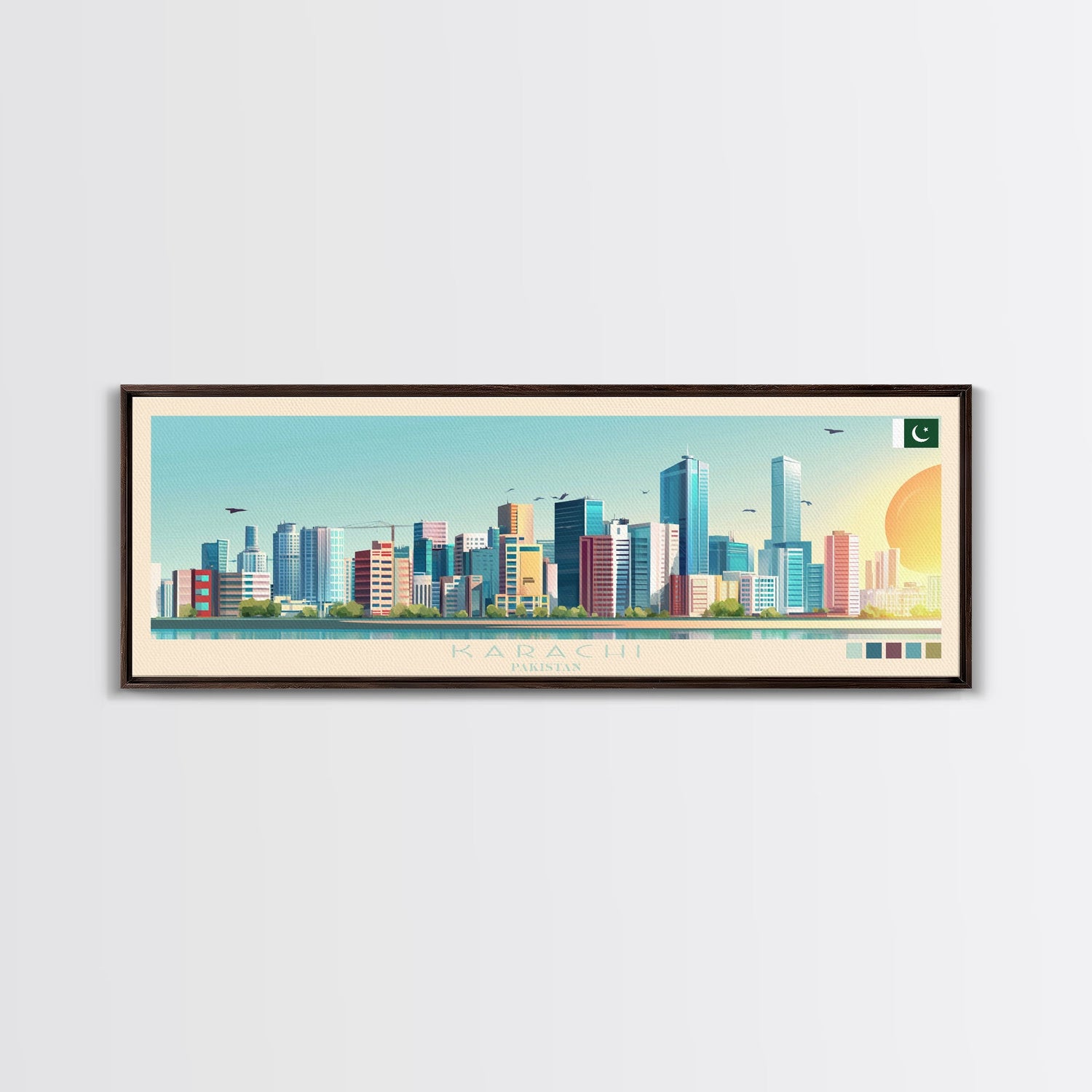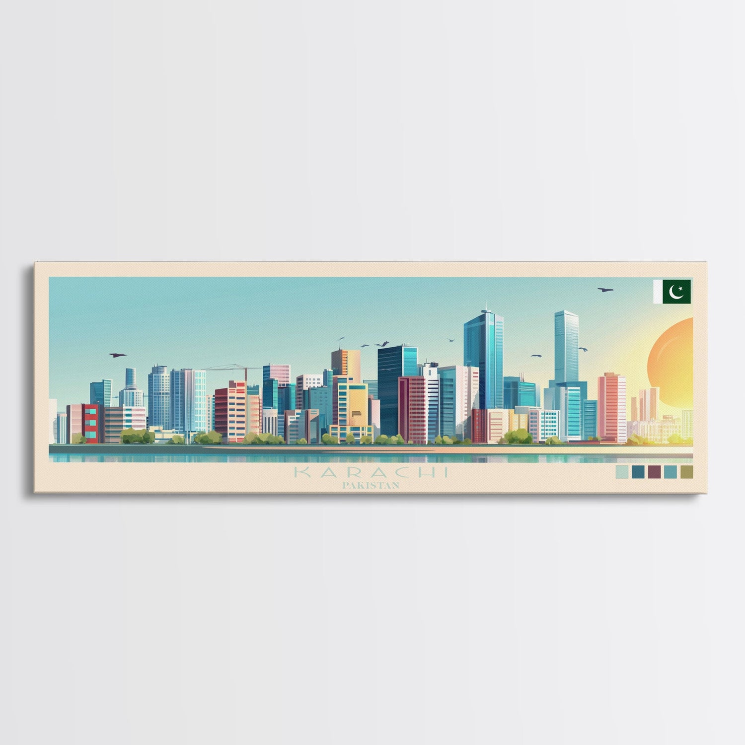 Karachi, Pakistan Panoramic Travel Poster Canvas Print, Karachi, Pakistan Painting, Pakistan Art, Karachi Panoramic Travel Art, Travel Painting