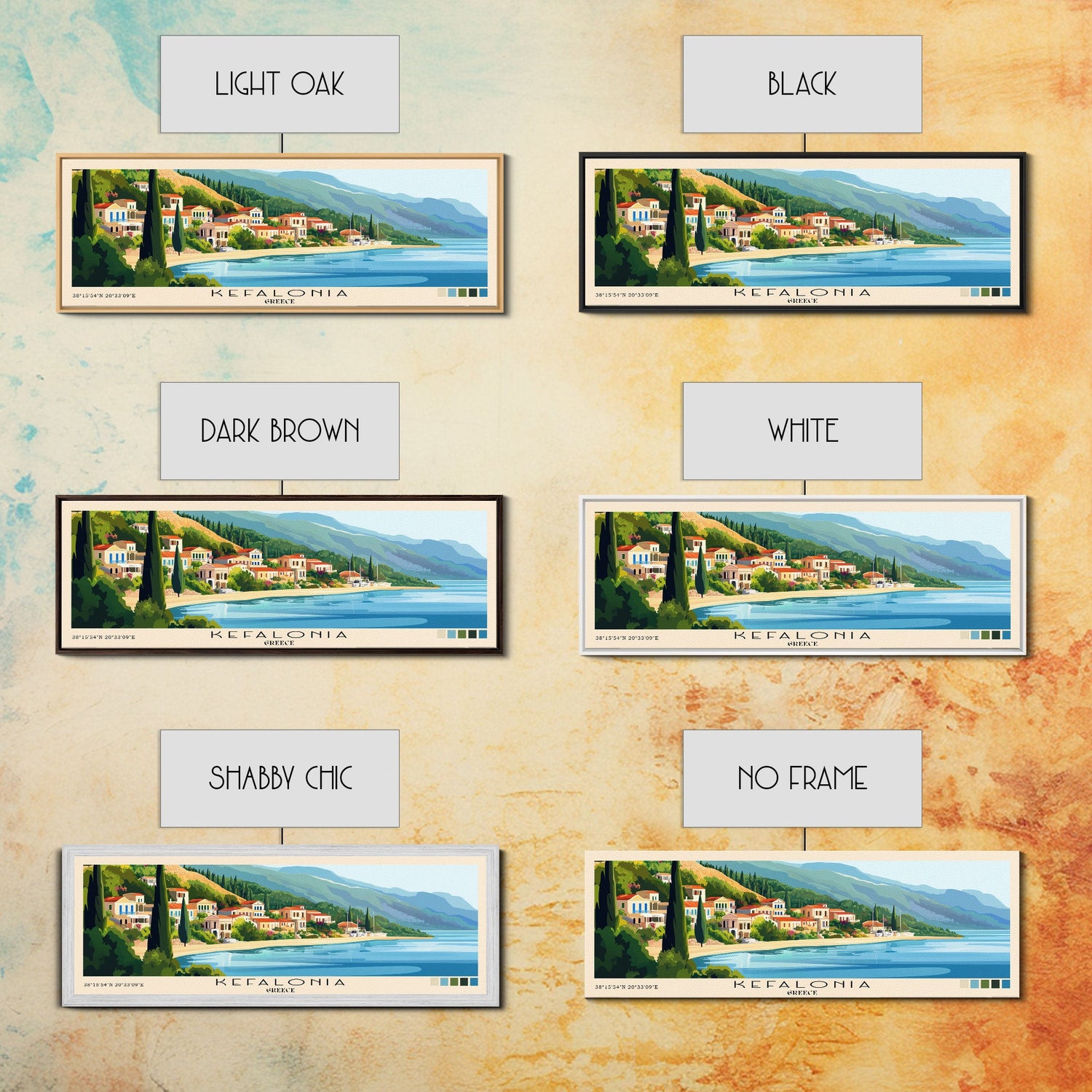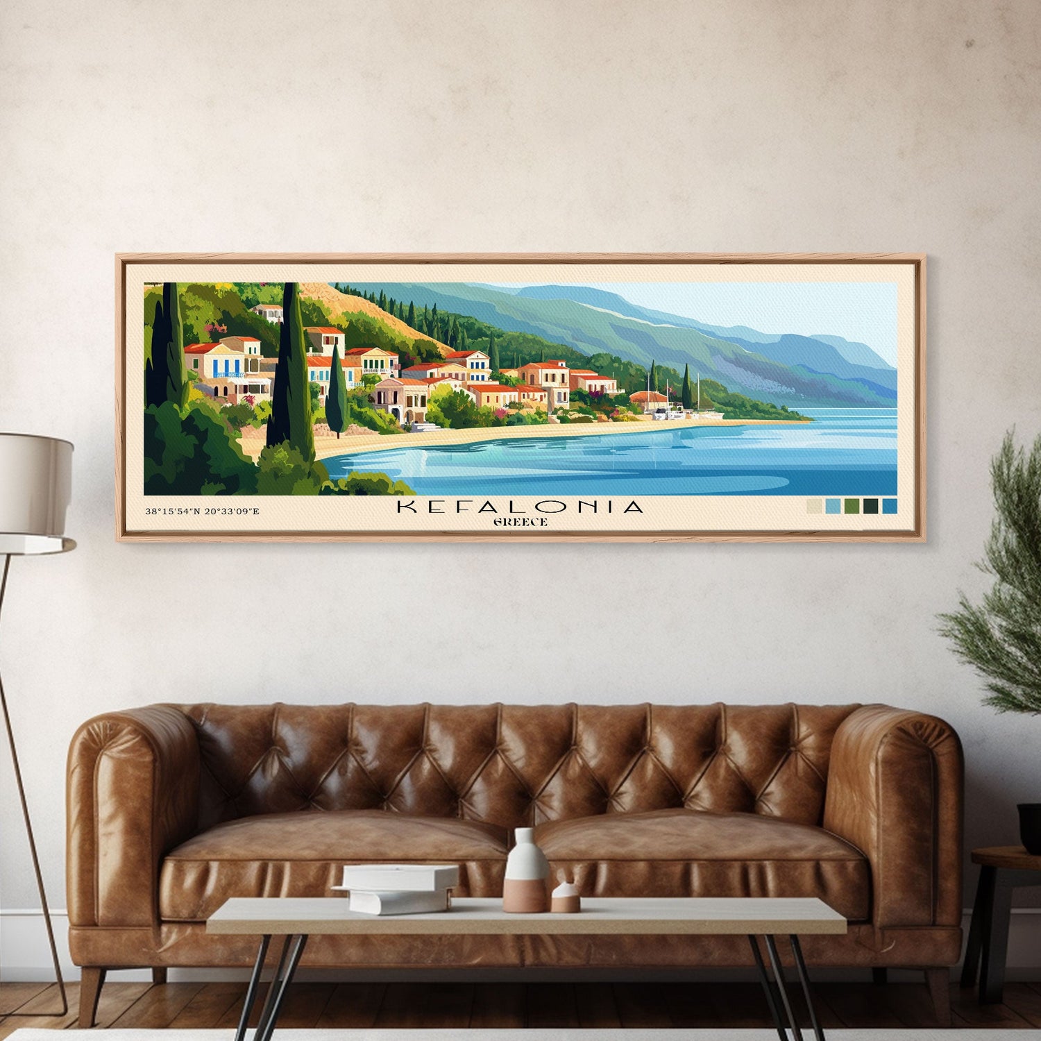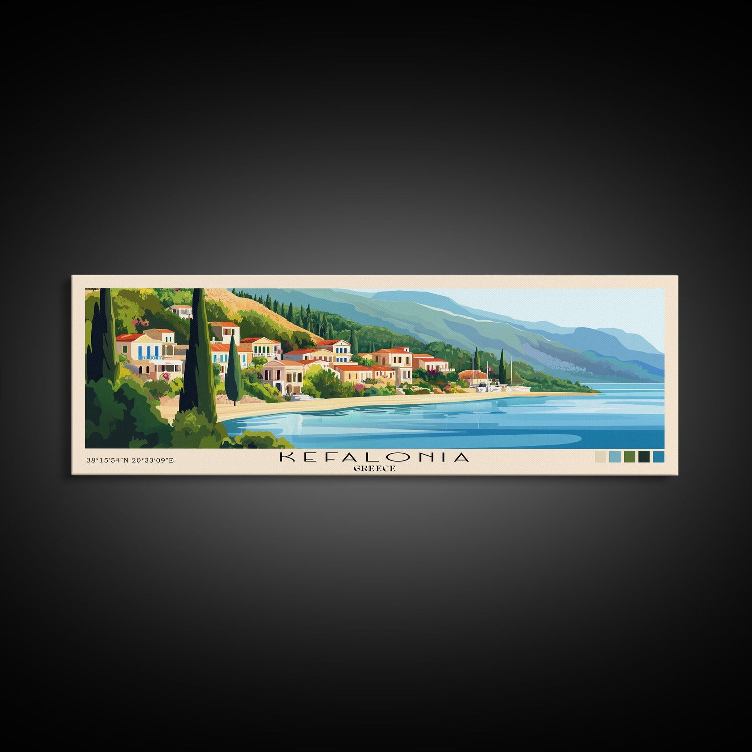 Kefalonia, Greece Panoramic Print, Vacation Gift, Greece Wall Art, Beach Painting, Beach Decor, Large Wall Art, Wood Frame Art