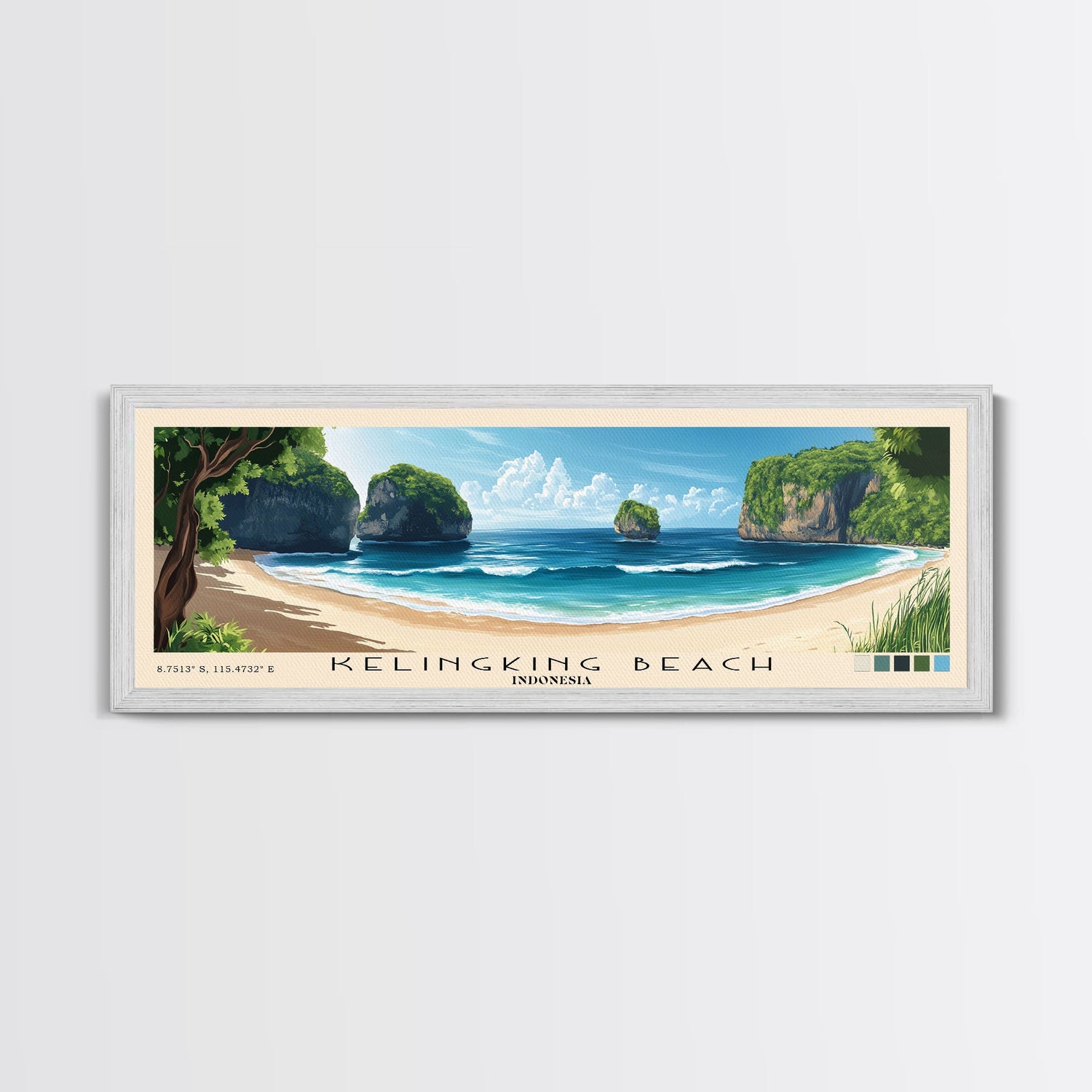 Kelingking Beach, Indonesia Panoramic Beach Print, Vacation Gift, Indonesia Wall Art, Framed Canvas Print, Framed Beach Painting