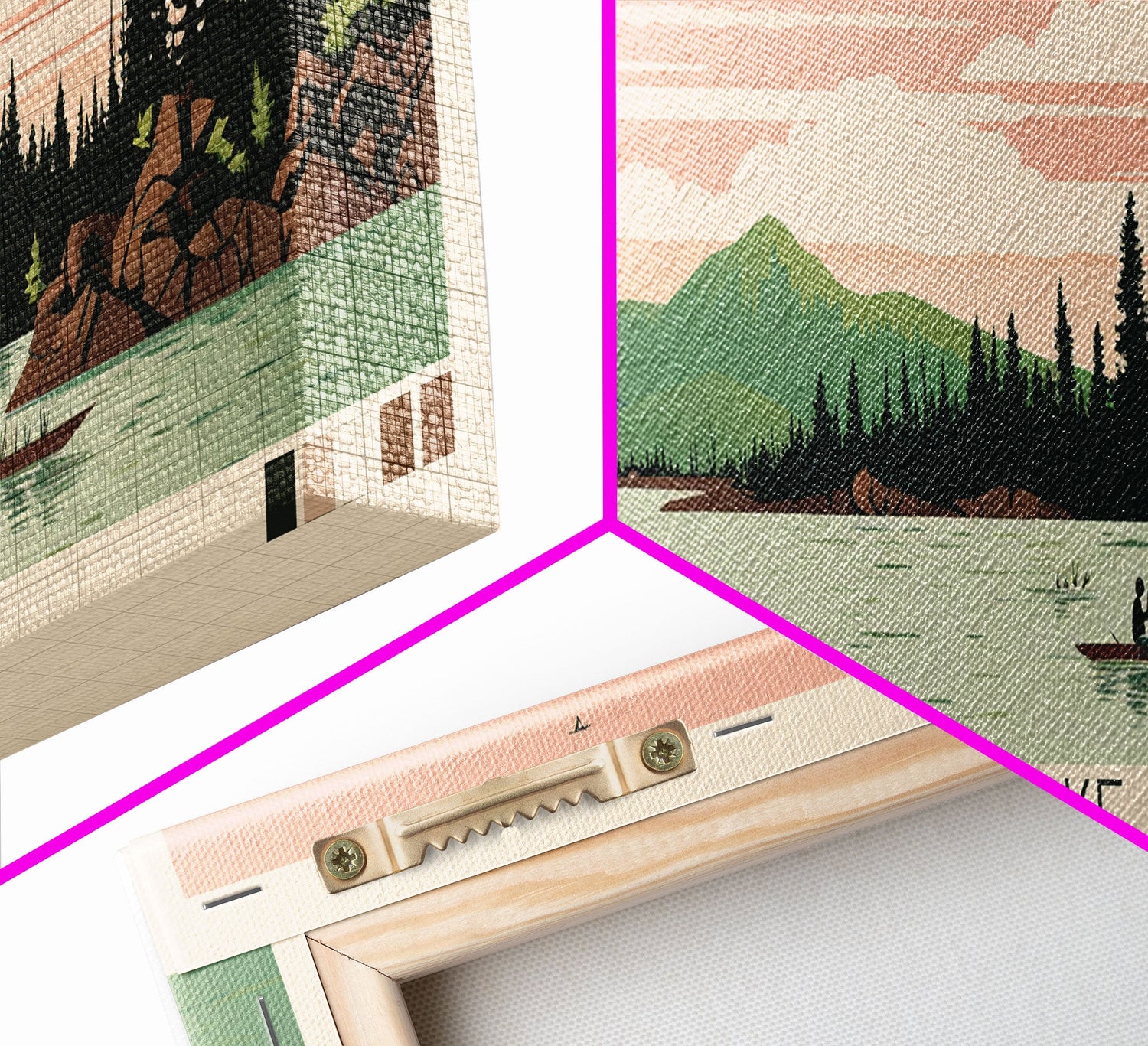 Keller Lake Northwest Territories Framed Canvas Print, Panoramic Art, Midcentury Modern, Pop Art, Living Room Wall Art, Travel Poster, Lake House Art
