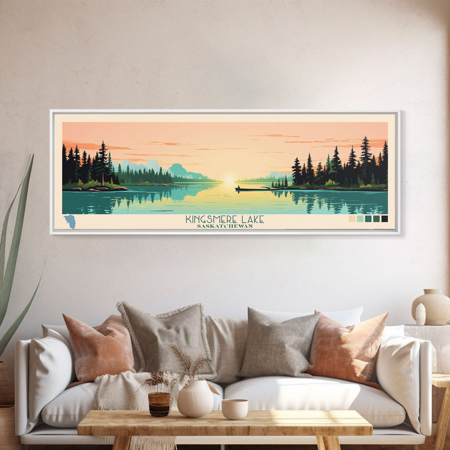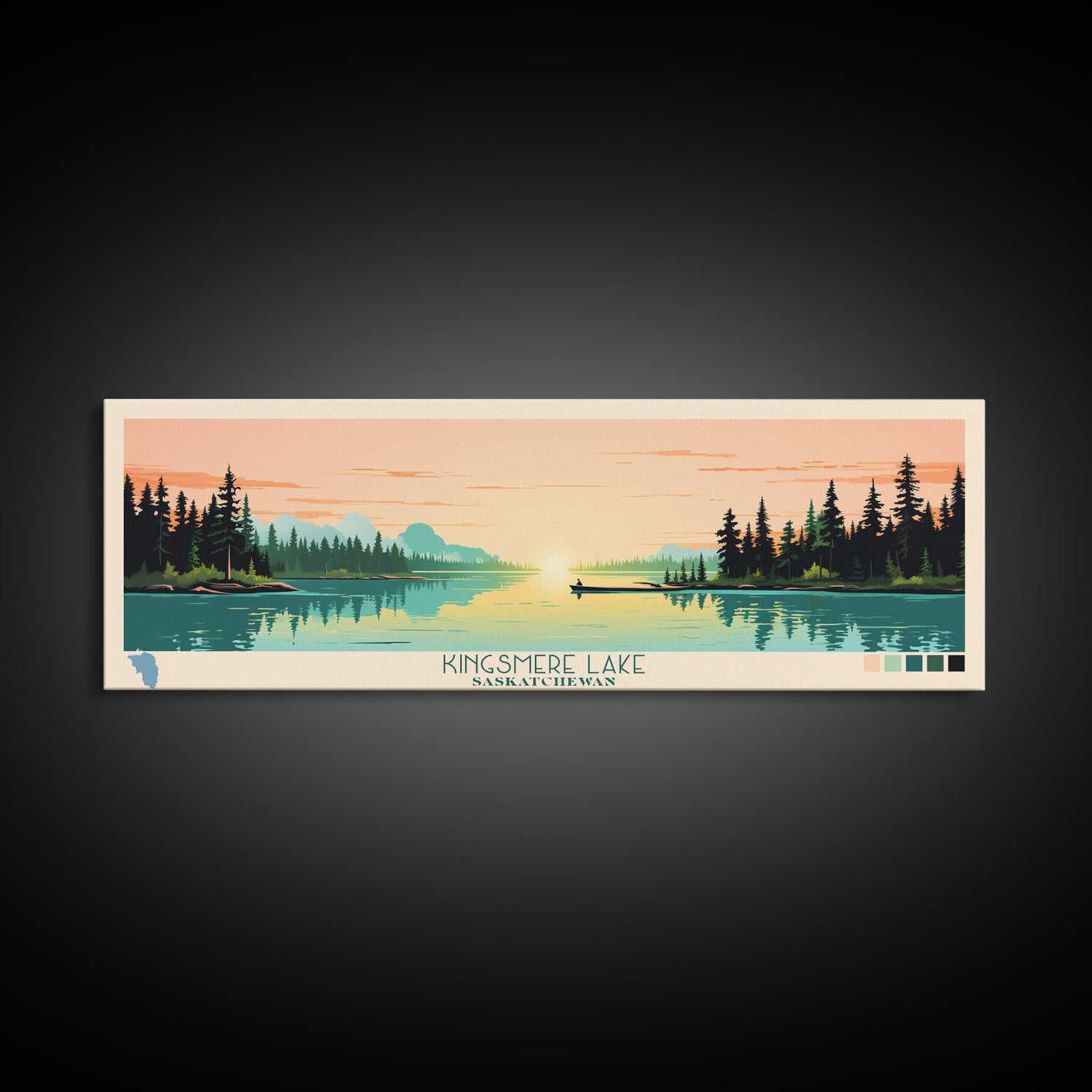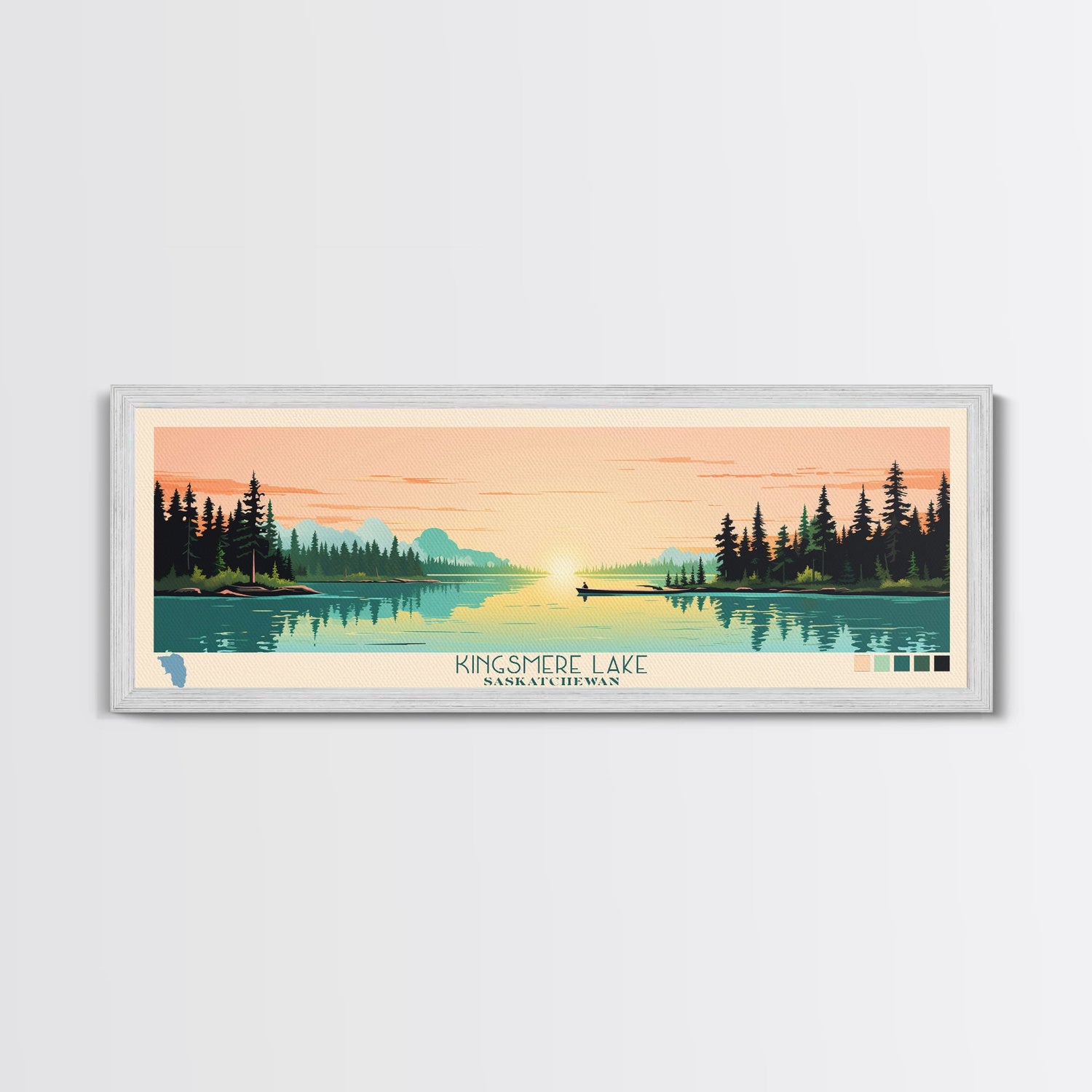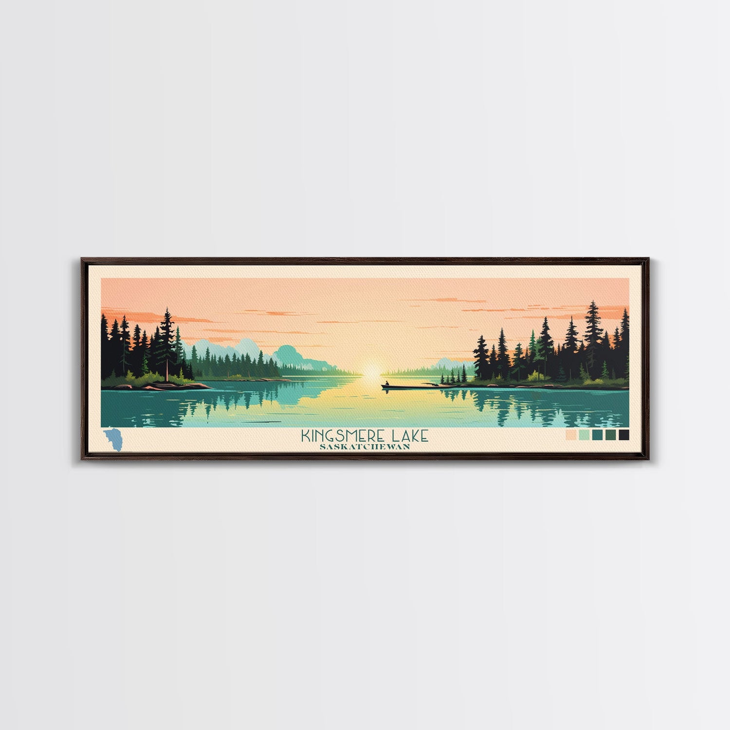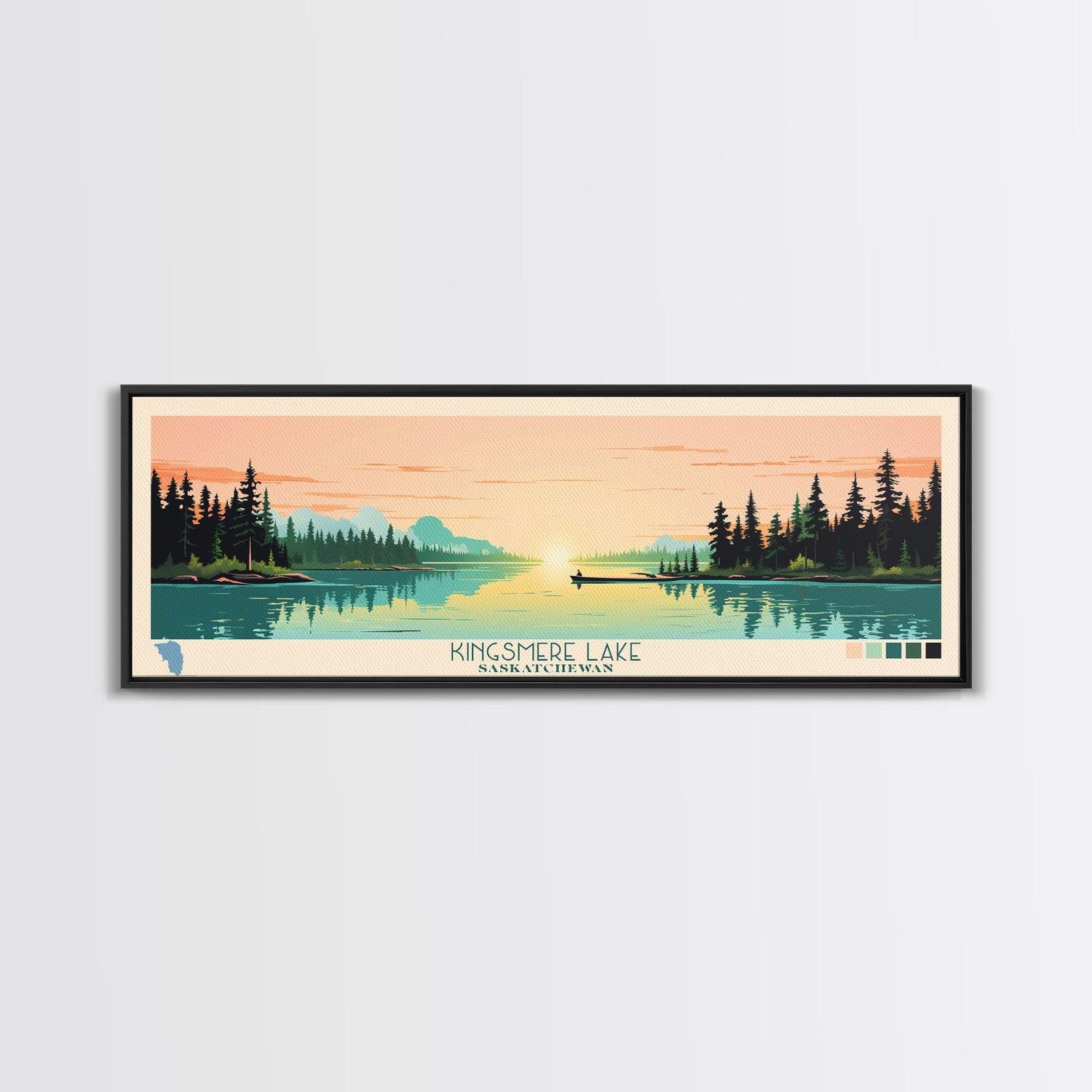 Kingsmere Lake Saskatchewan Framed Canvas Print, Panoramic Wall Art, Midcentury Modern, Pop Art, Bedroom Art, Travel Poster, Home Decor