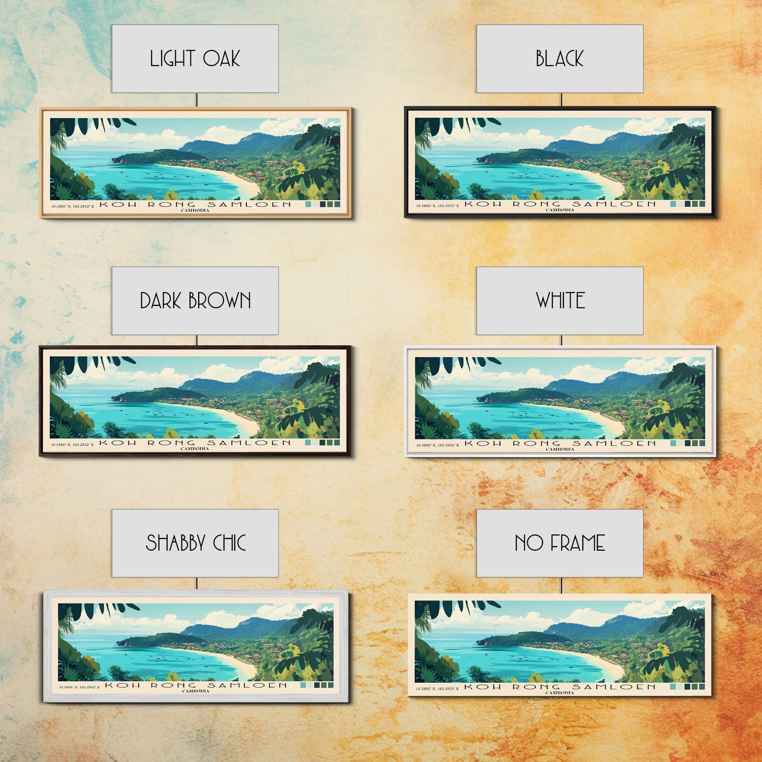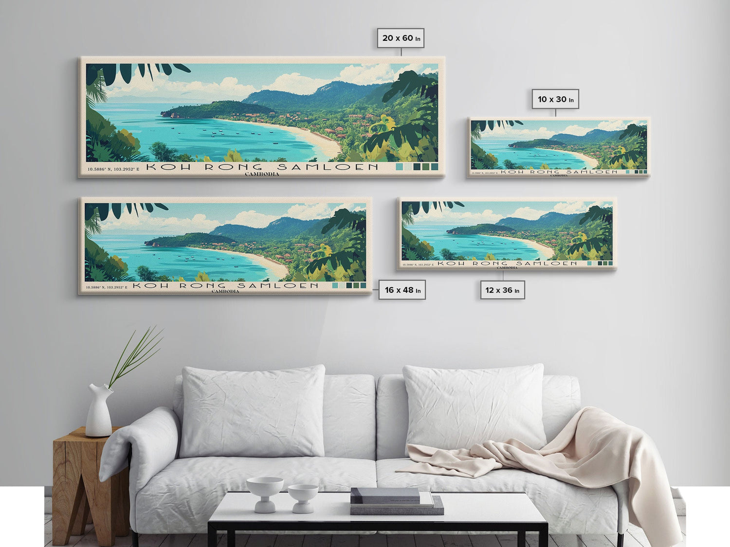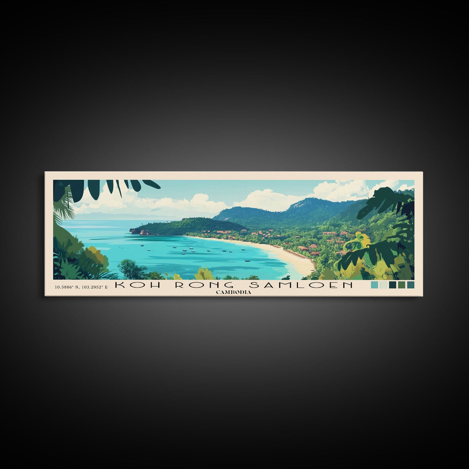 Koh Rong Samloen, Cambodia Panoramic Beach Print, Vacation Gift, Cambodia Wall Art, Framed Canvas Print, Framed Beach Painting