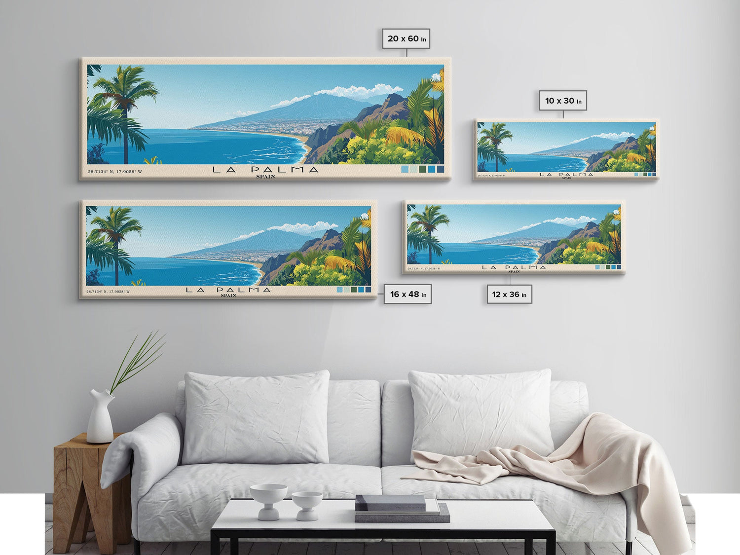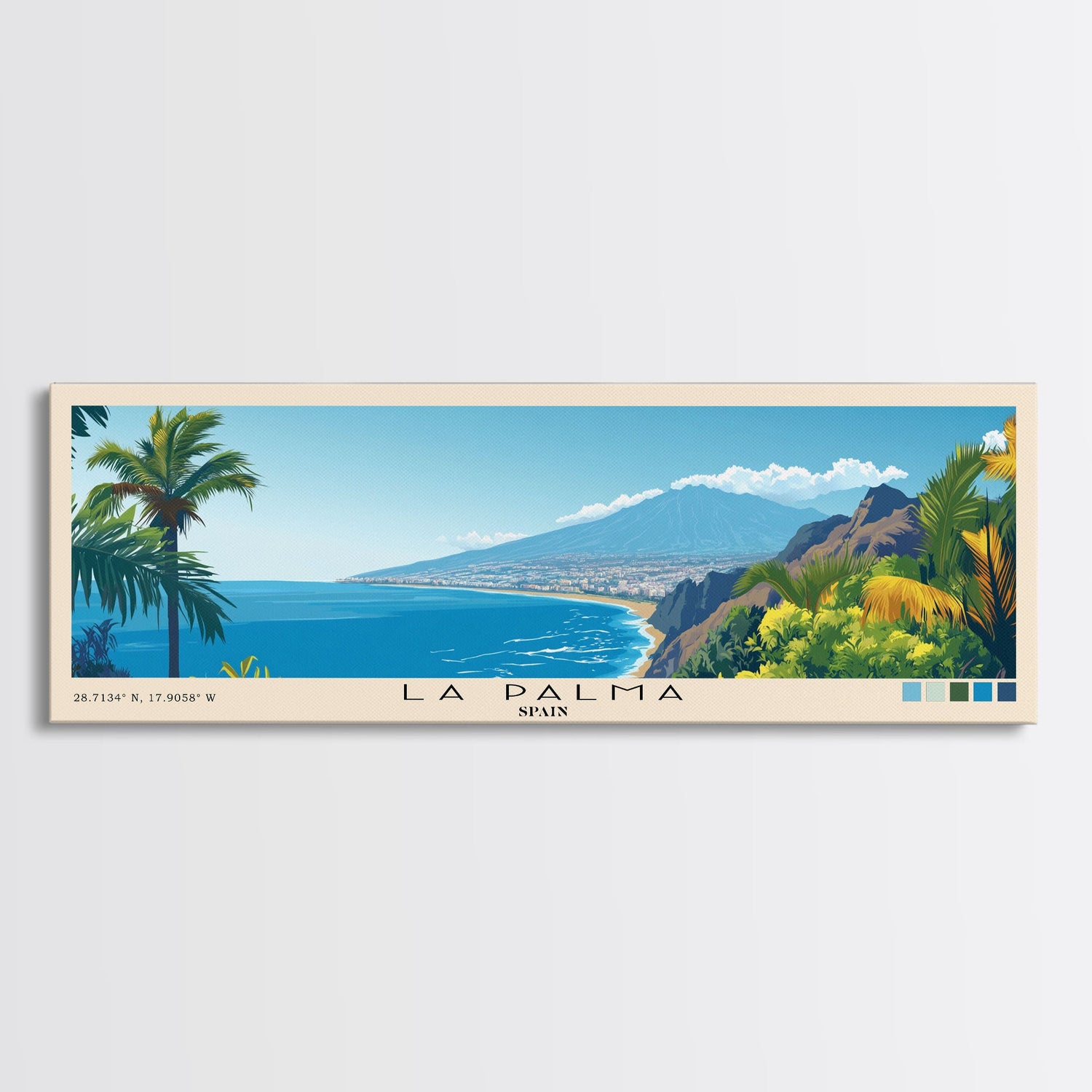 La Palma, Spain Panoramic Beach Print, Vacation Gift, Spain Wall Art, Beach Painting, Beach Decor, Beach Painting