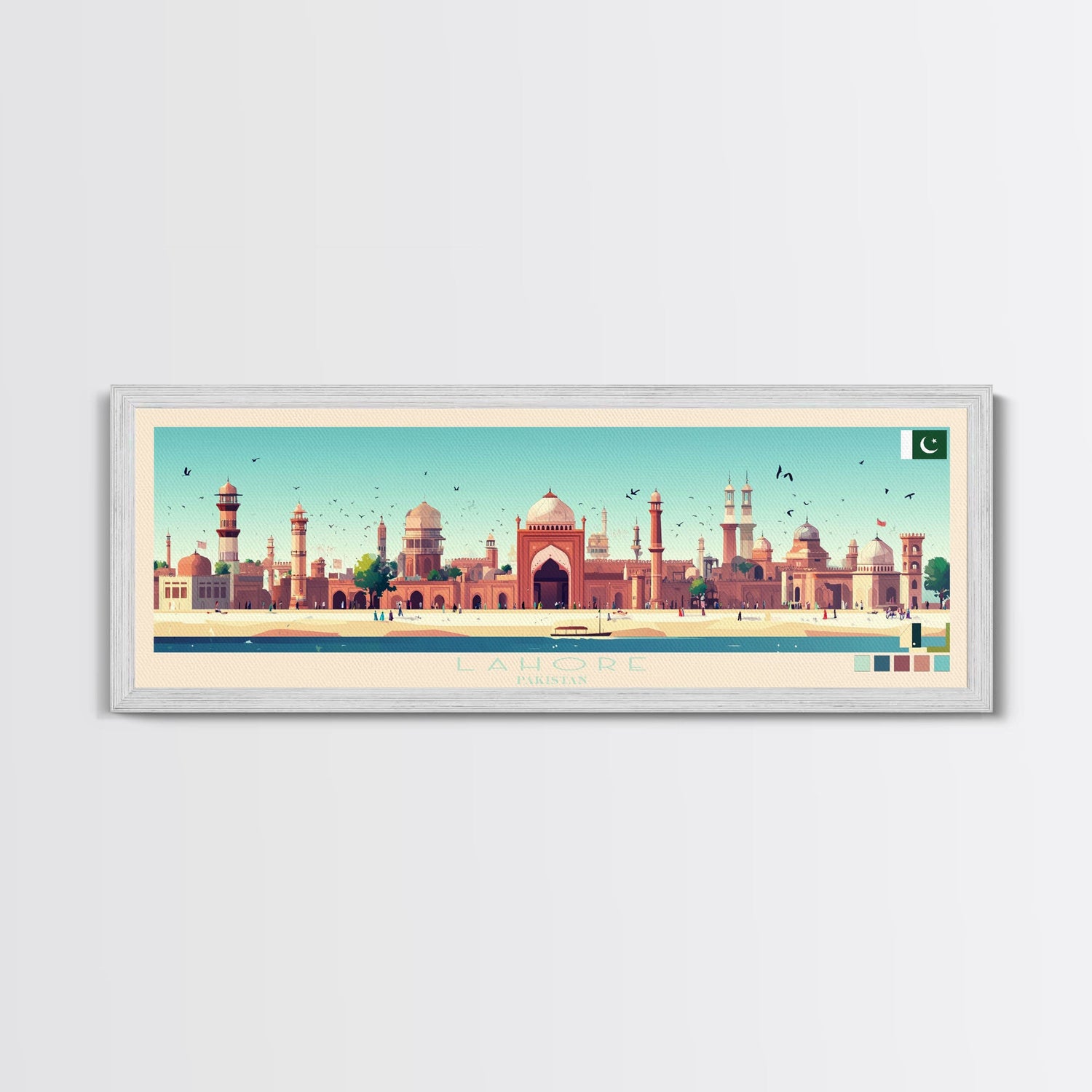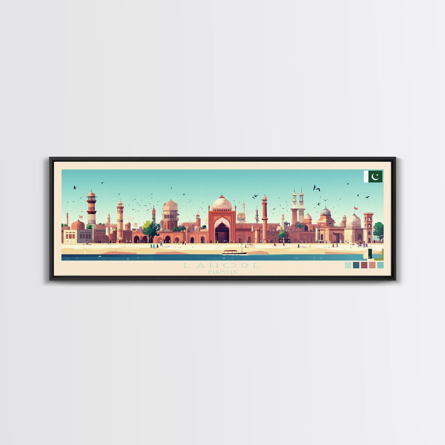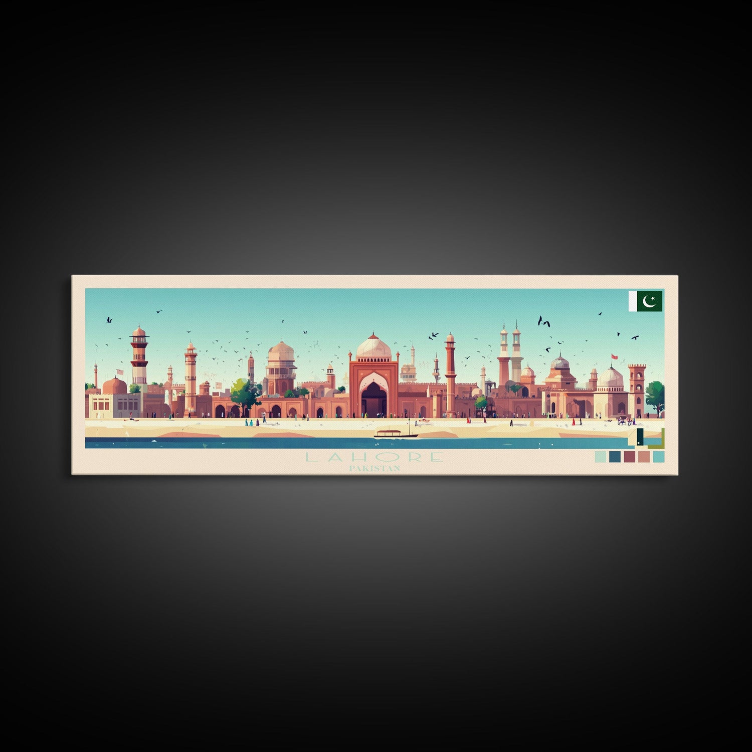 Lahore, Pakistan Panoramic Travel Poster Canvas Print, Lahore, Pakistan Painting, Pakistan Art, Lahore Travel Art, Guest Room Painting
