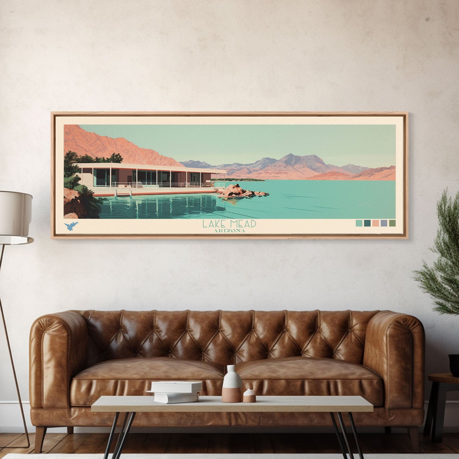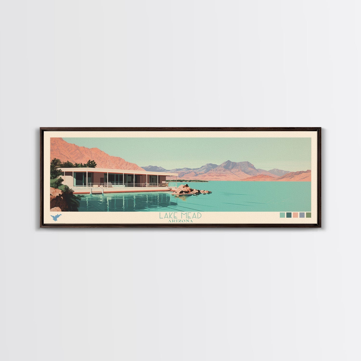 Lake Mead Arizona Nevada Framed Canvas Print, Panoramic Wall Art, Midcentury Modern, Pop Art, Living Room Decor, Travel Poster