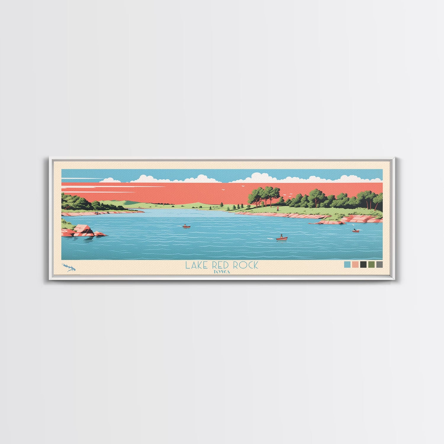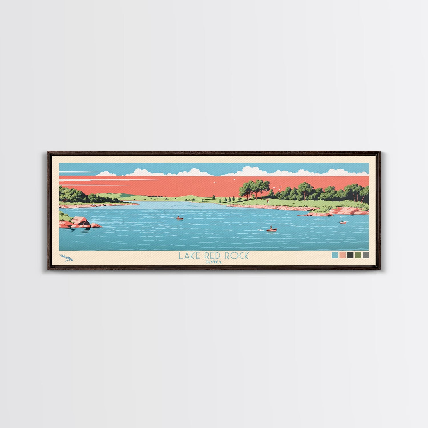 Lake Red Rock Iowa Framed Canvas Print, Panoramic Wall Art, Midcentury Modern, Pop Art, Living Room Decor, Travel Poster, Lake House Art