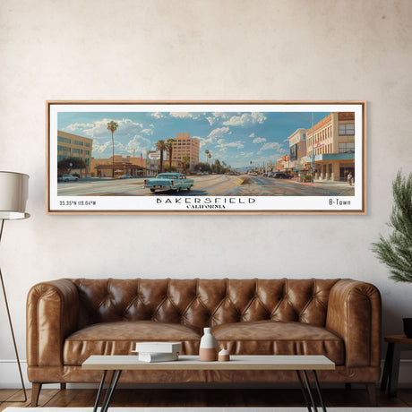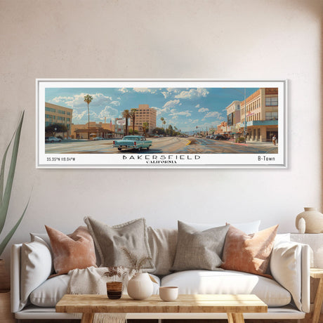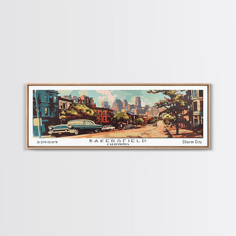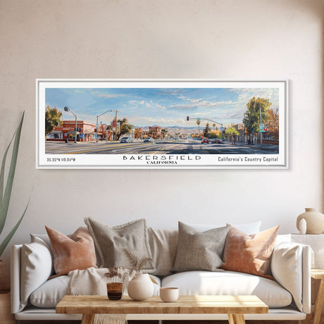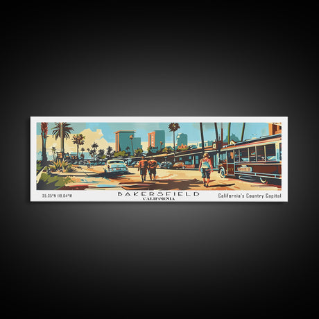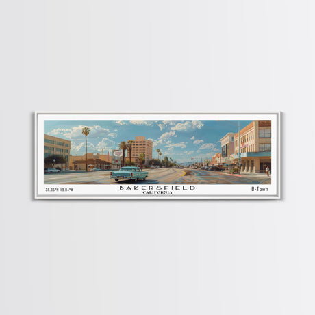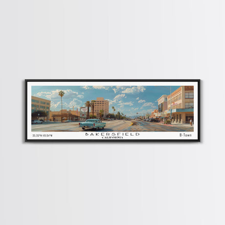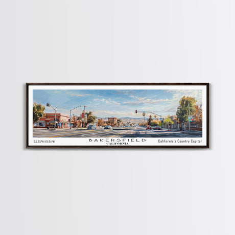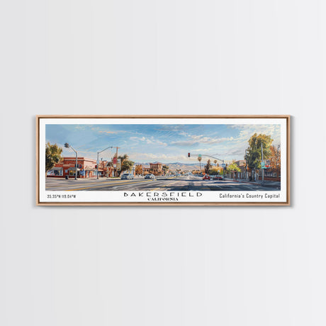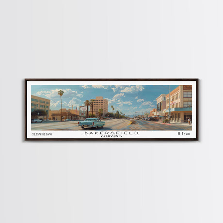 Bakersfield California Panoramic Travel Poster Canvas Print