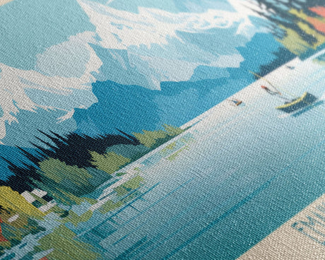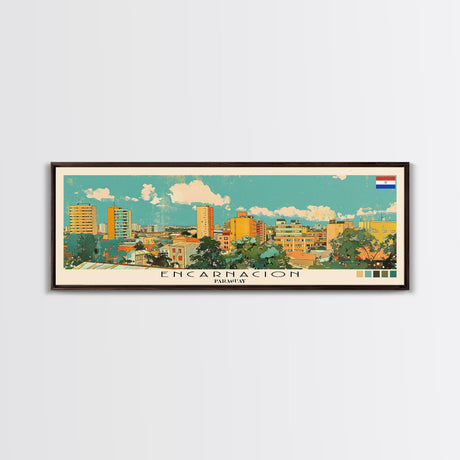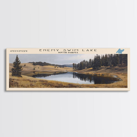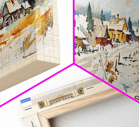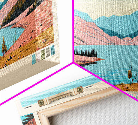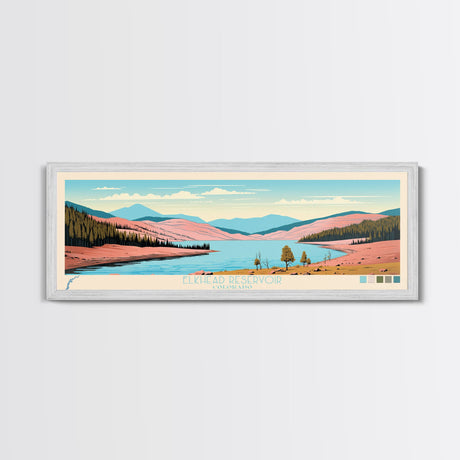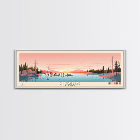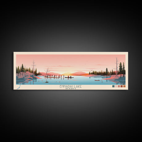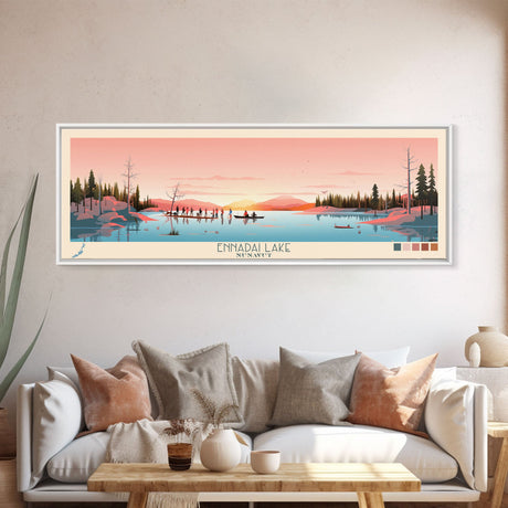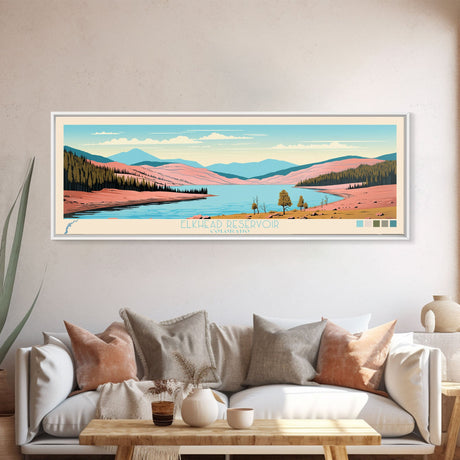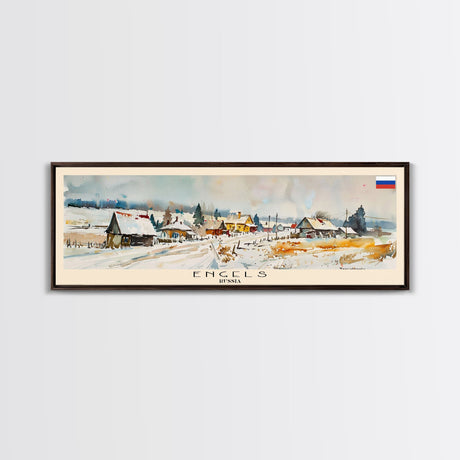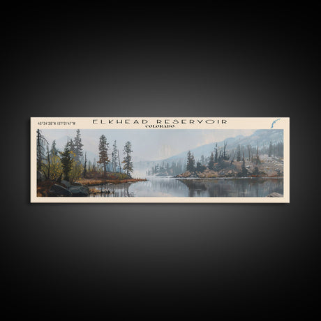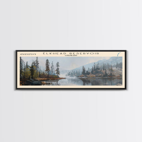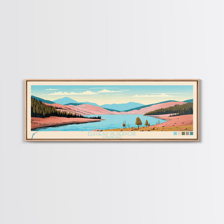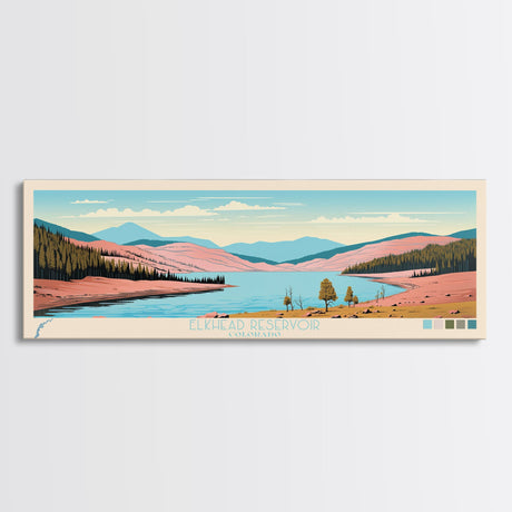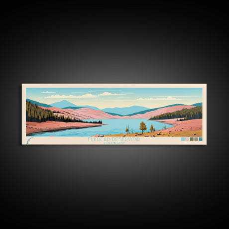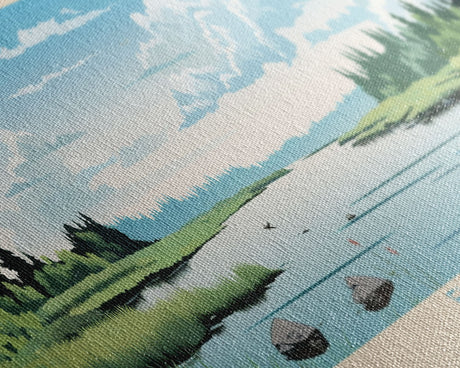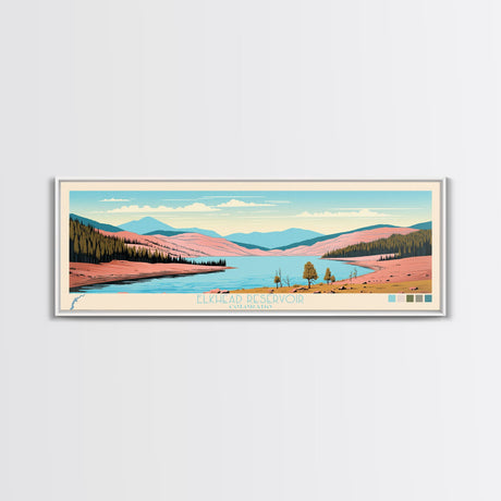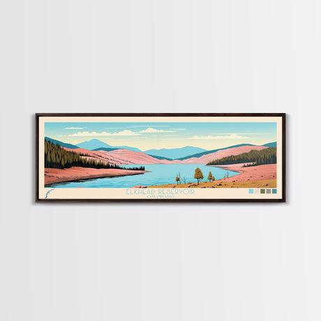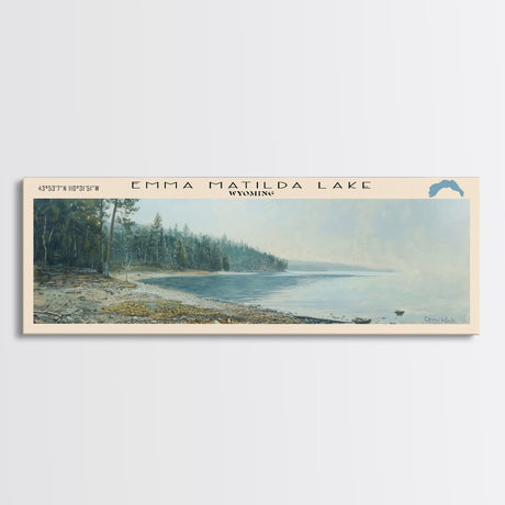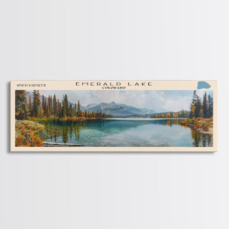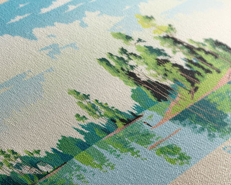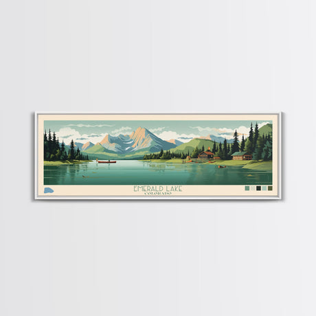 Emerald Green Landscape Watercolor, Ready To Hang Canvas Print, Panoramic Art, Cool Wall Decor