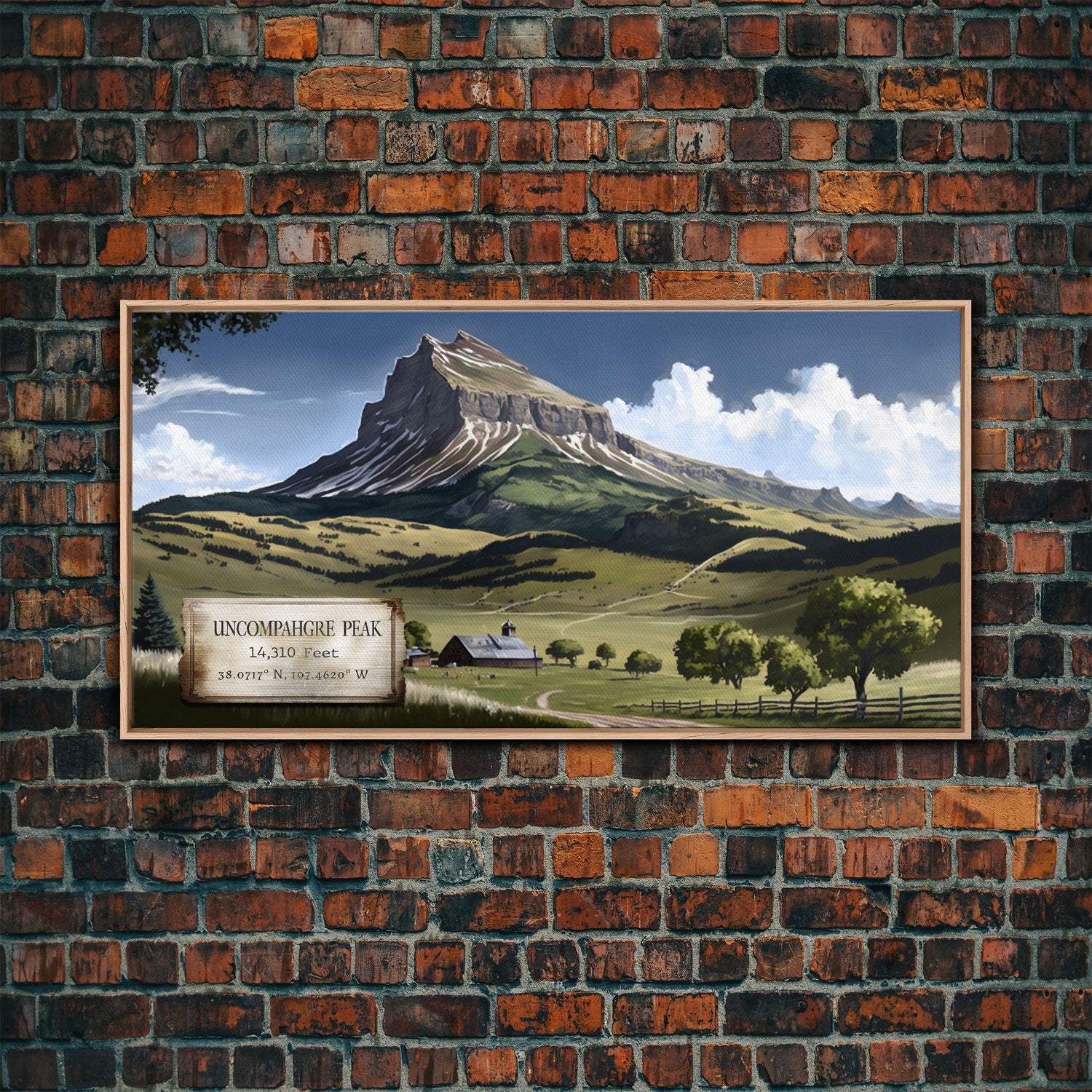 Uncompahgre Peak, Travel Poster Wall Art, Framed Canvas Print, American Mountains, Mountain Landscape Painting, Mountains of Colorado