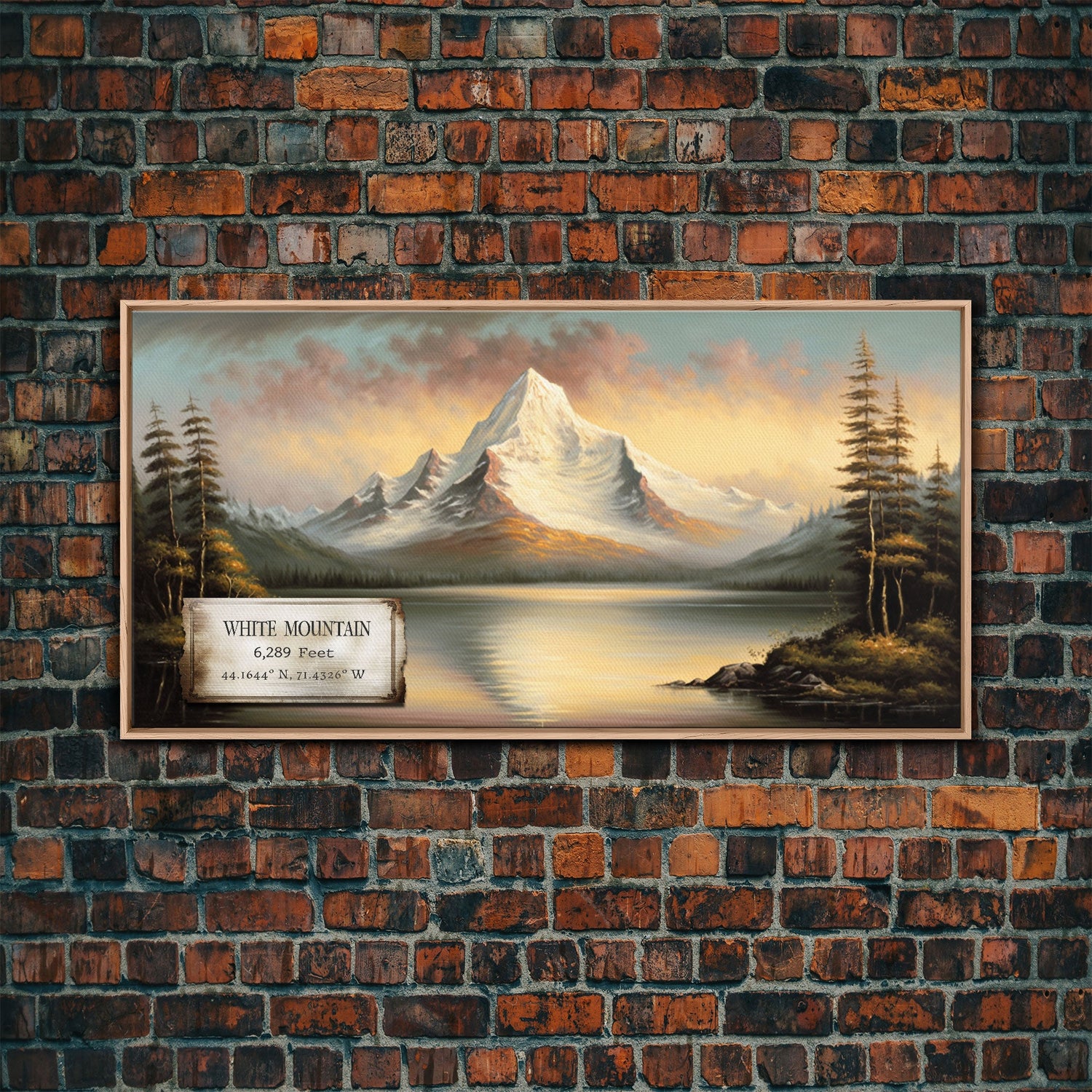 White Mountain, Travel Poster Wall Art, Framed Canvas Print, American Mountains, Mountain Landscape Painting, Mountains of New Hampshire