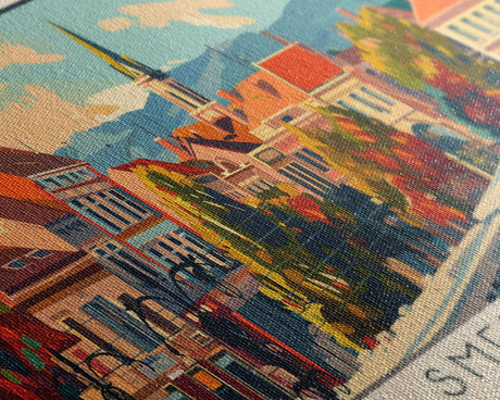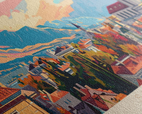 Sloth in a tree, synthwave retrowave animal print, framed canvas art