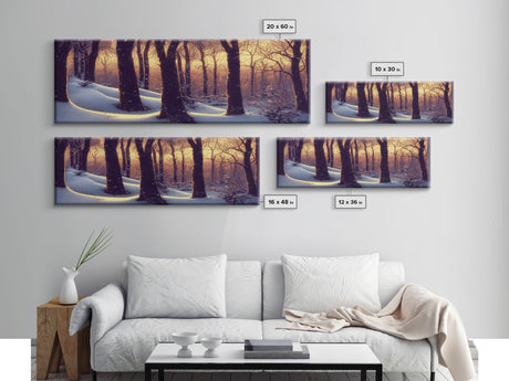 Snowfall in the forest, 3 Piece Wall Art, Ready To Hang Canvas Print