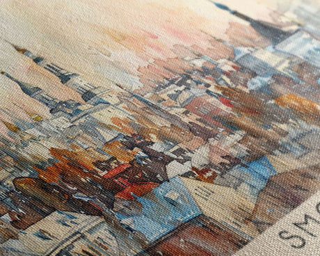 Smoky Sea, Lighthouse Art, Abstract Beach Art, Framed Canvas Print, Ready To Hang Framed Wall Art