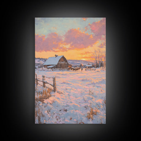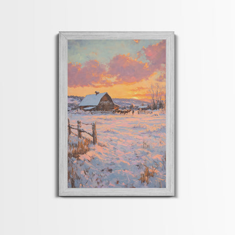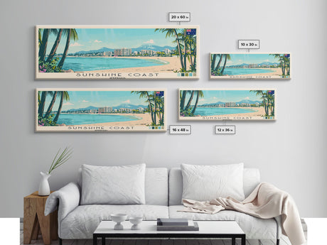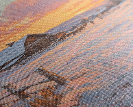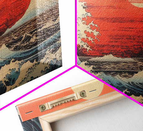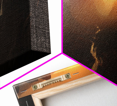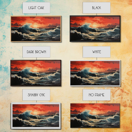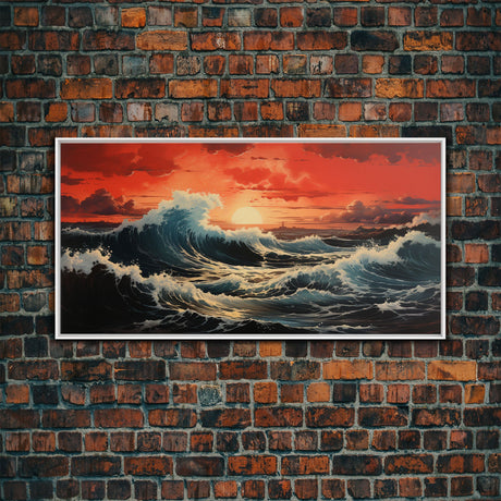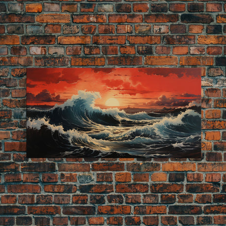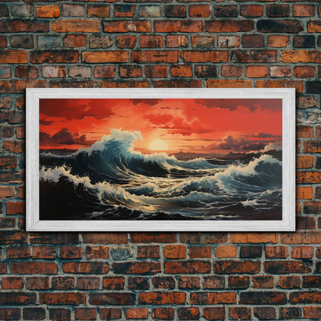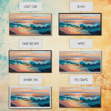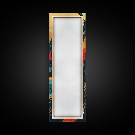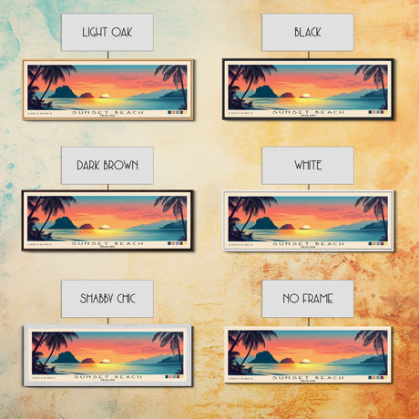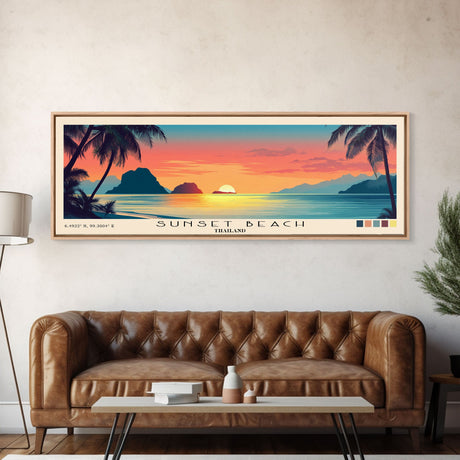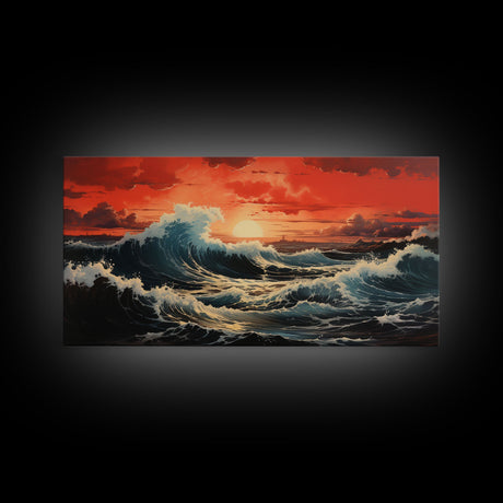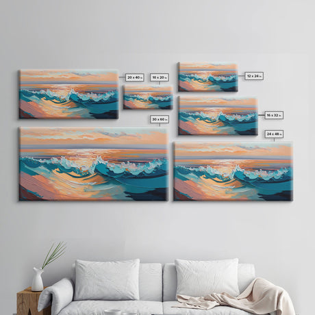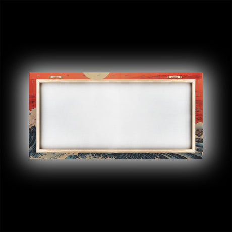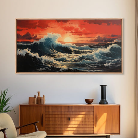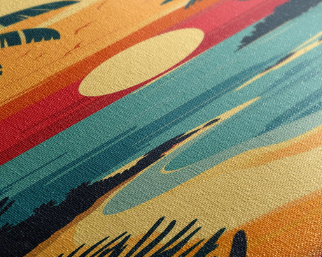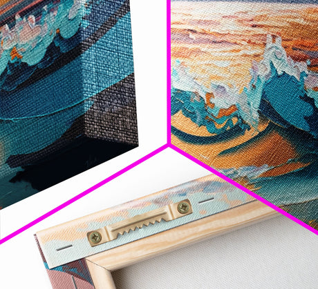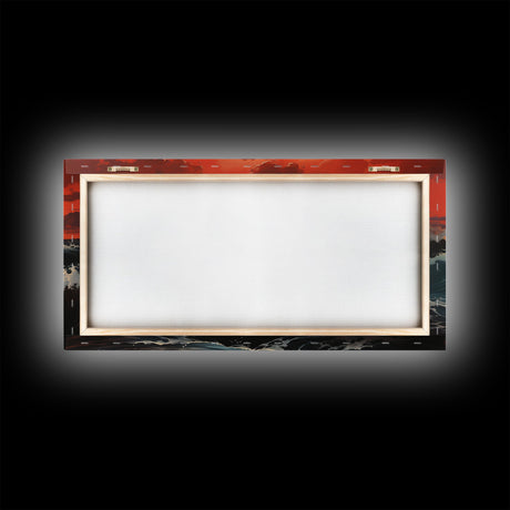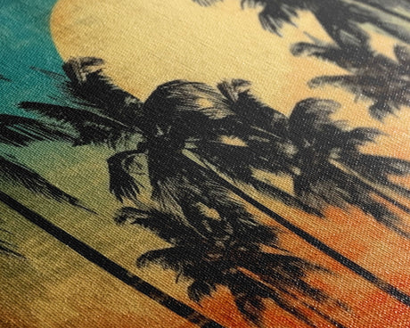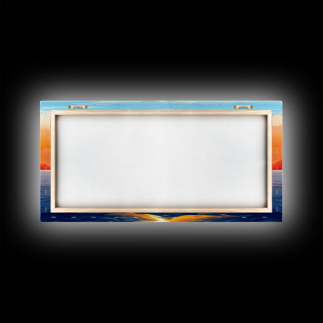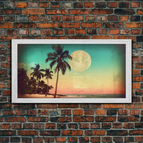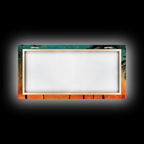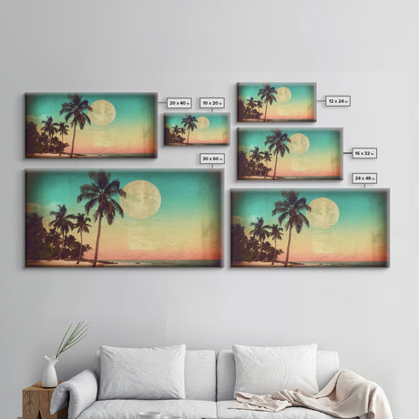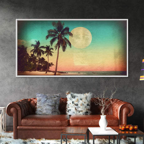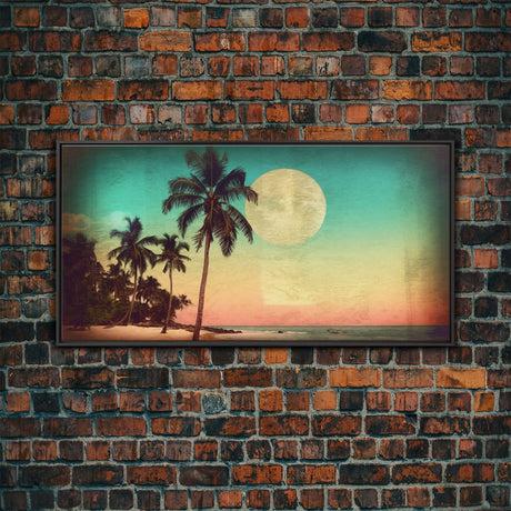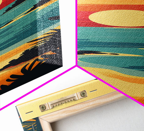 Sunset Over A Miami Beach, Framed Canvas Print, Vaporwave Wall Art, Retro 1980s Beach Art