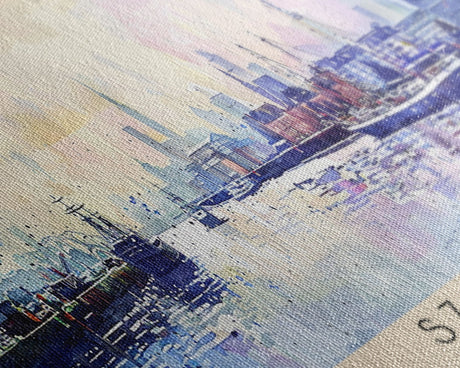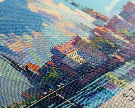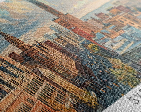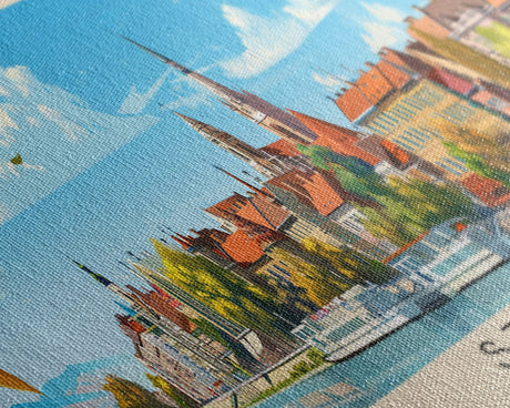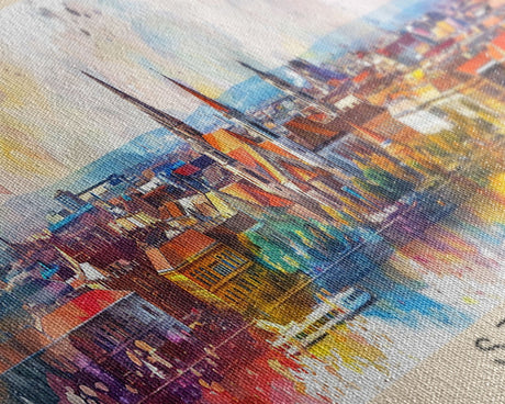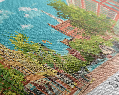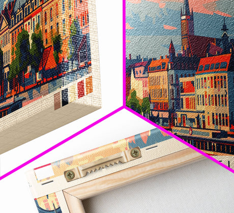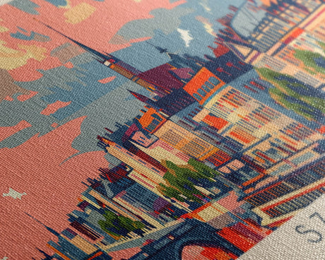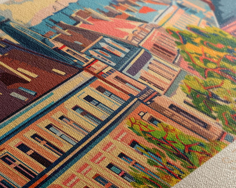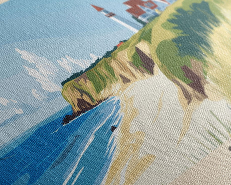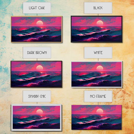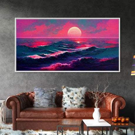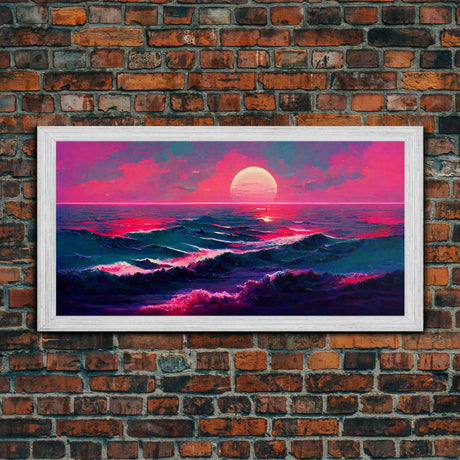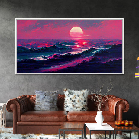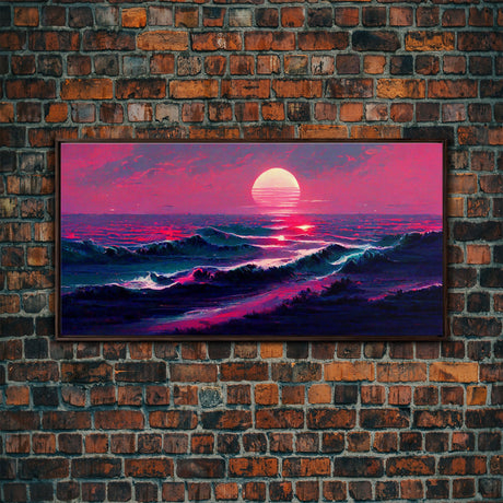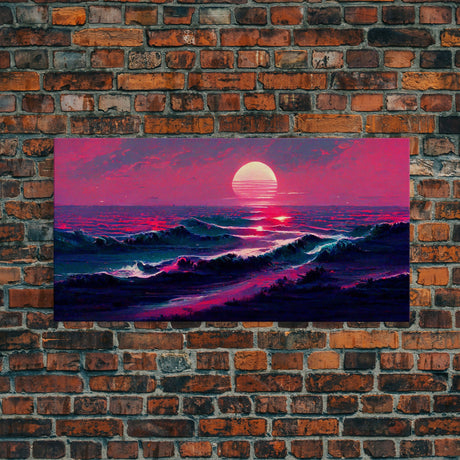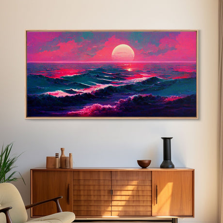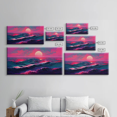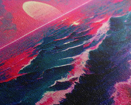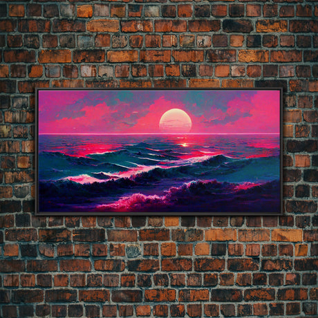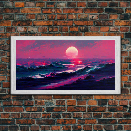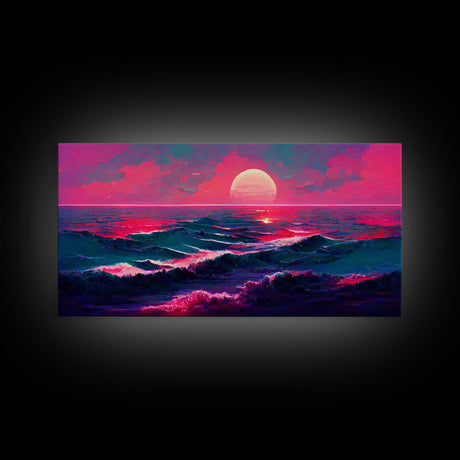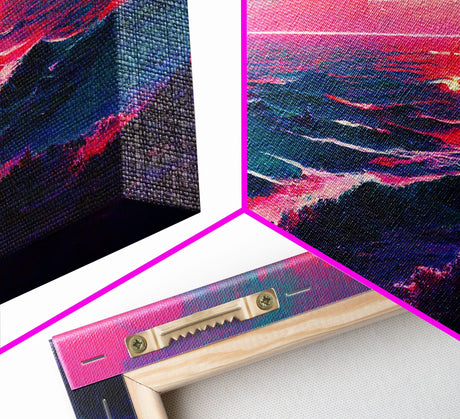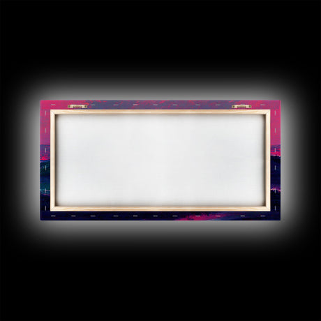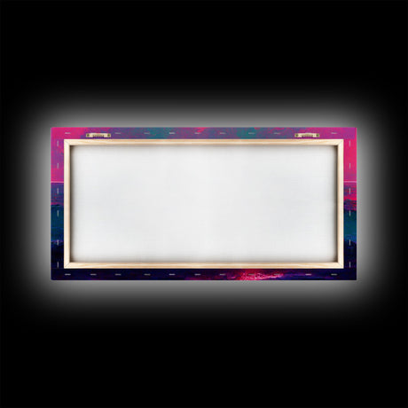 Synthwave Art, Neon / Pastel Beach Boardwalk, framed canvas print, vintage 80s style art