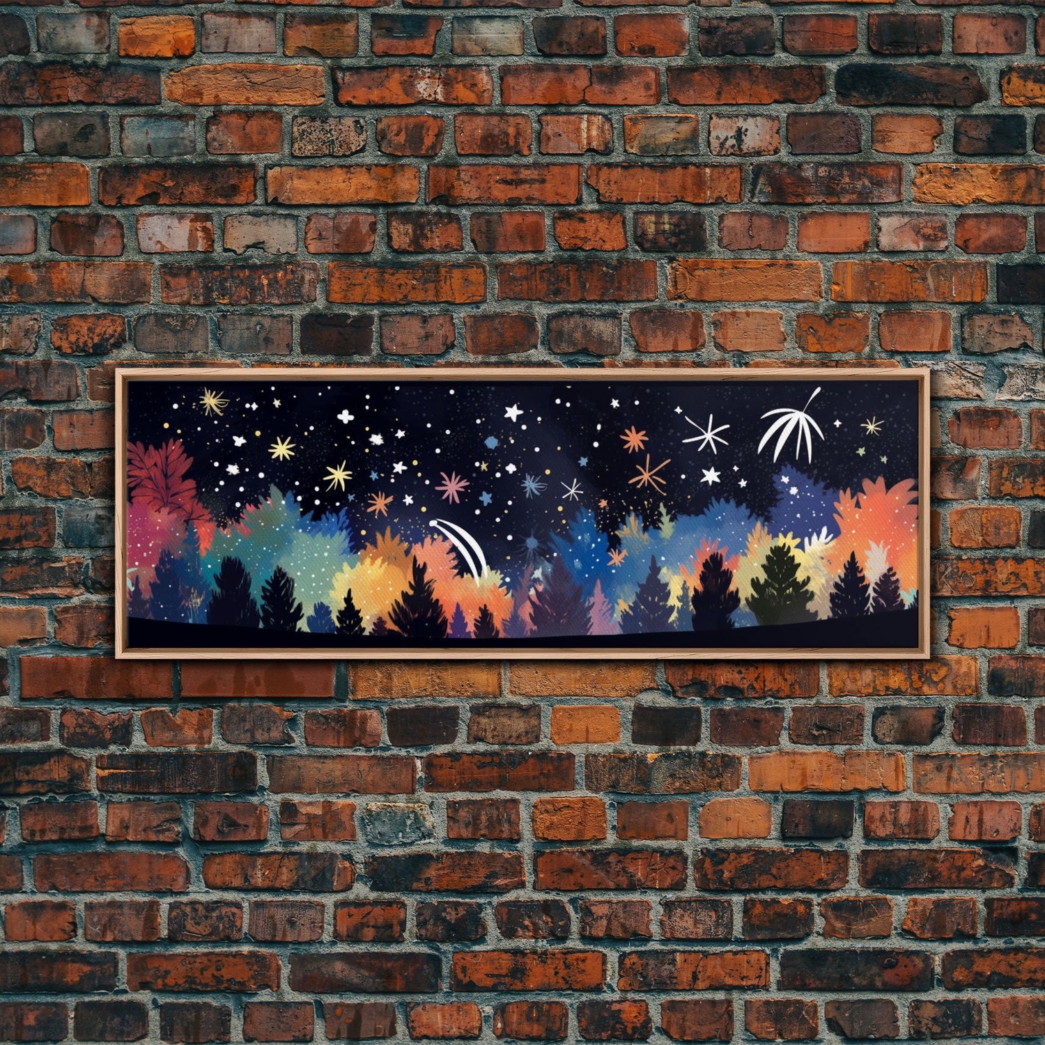 Abstract Forest Art, Dark Forest Art, Autumn Canvas Print, Starry Night Sky, Framed Canvas Print, Panoramic, Wall Art, Canvas Print