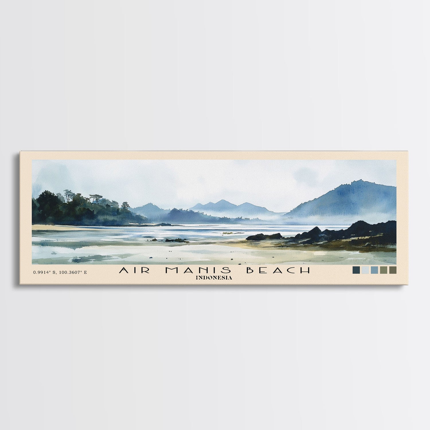 Air Manis Beach, Indonesia Watercolor Beach Print, Vacation Gift, Indonesia Wall Art, Framed Canvas Print, Framed Beach Painting