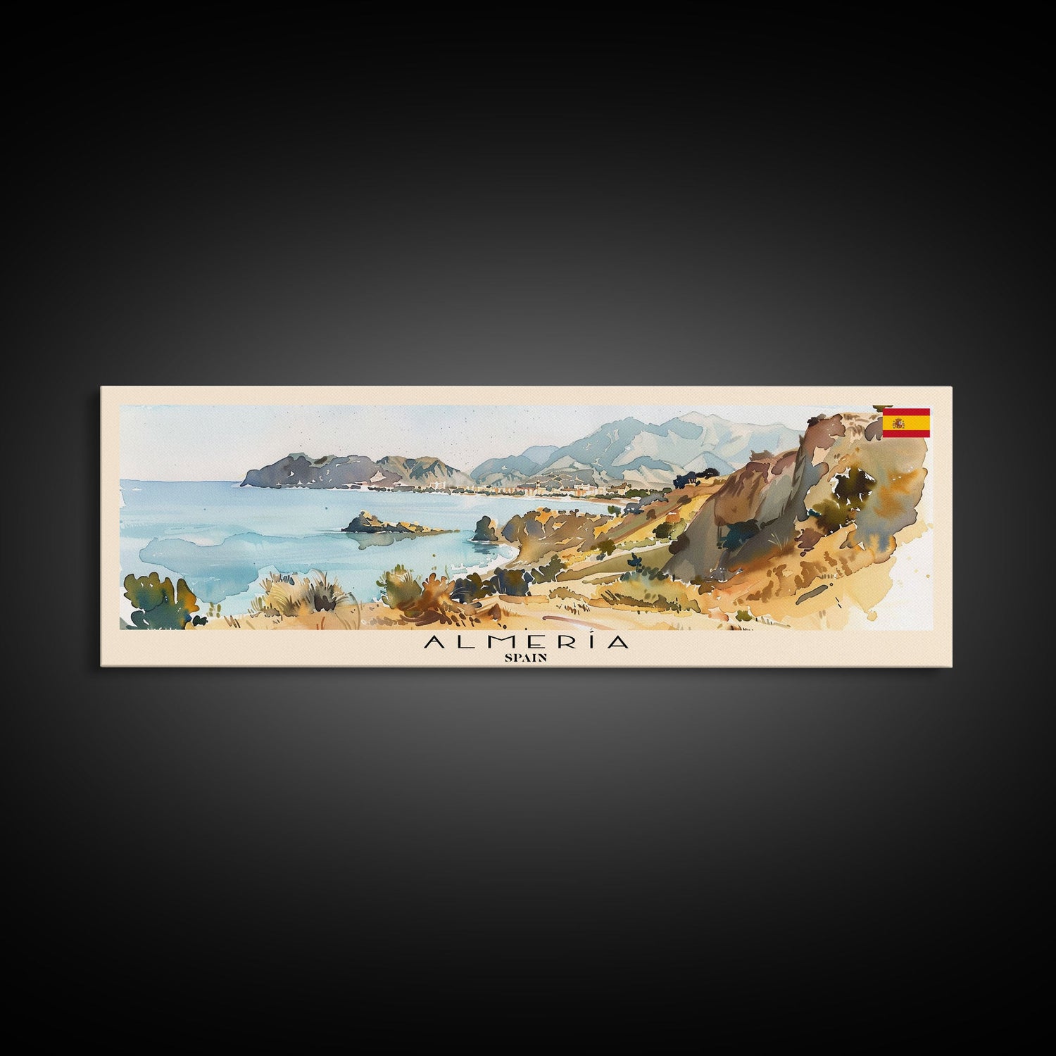 Almeria Spain Panoramic Travel Poster, Framed Canvas Print or Metal Wall Art, Travel Art, Home Decor, Panoramic Painting, Midcentury Art
