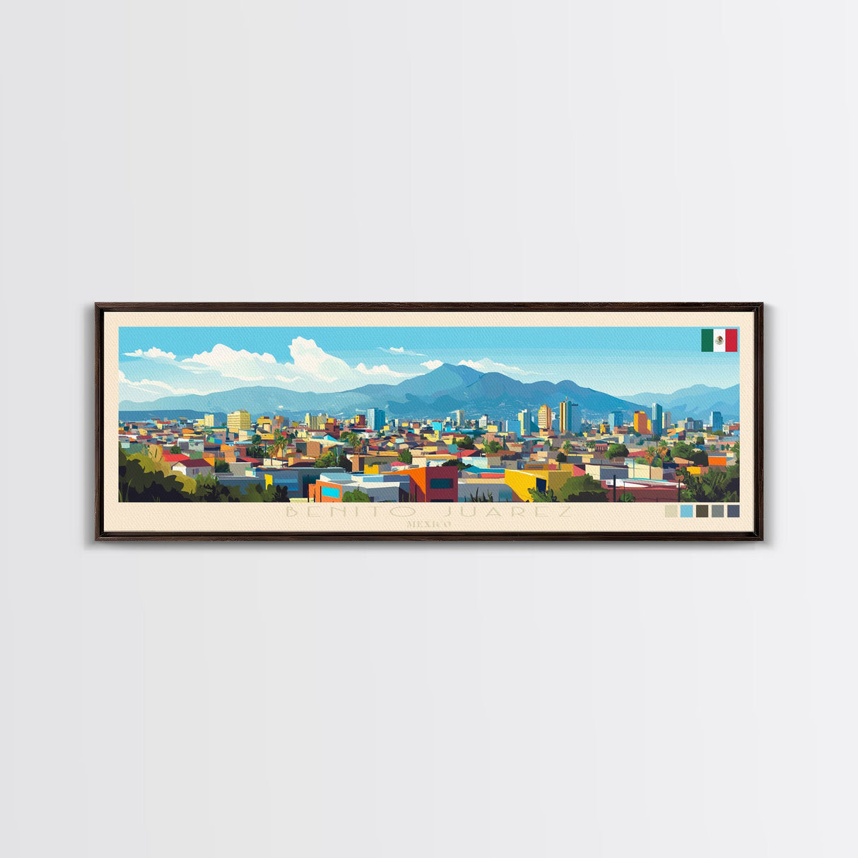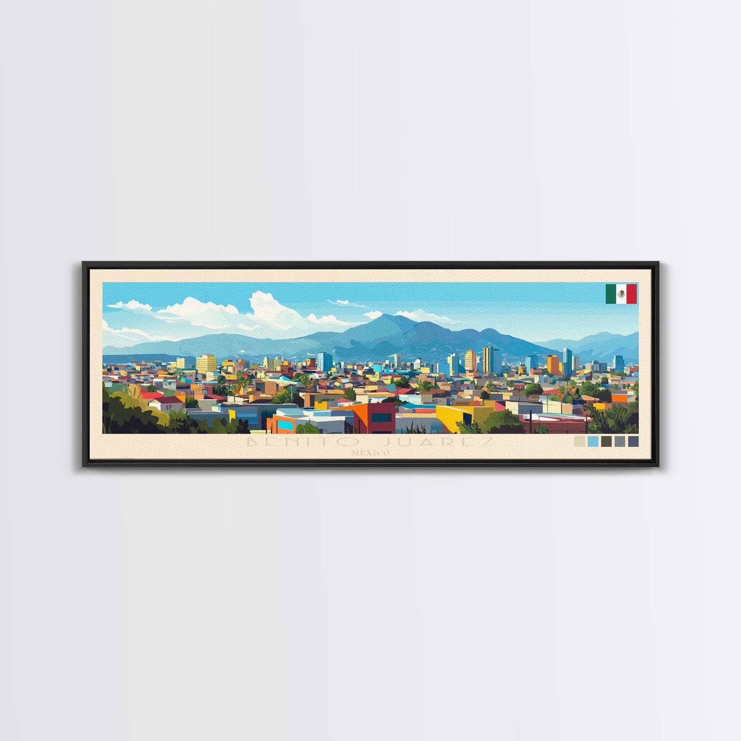 Benito Juarez, Mexico Panoramic Travel Poster Canvas Print, Benito Juarez, Mexico Painting, Mexico Art, Benito Juarez Travel Art, Guest Room Painting