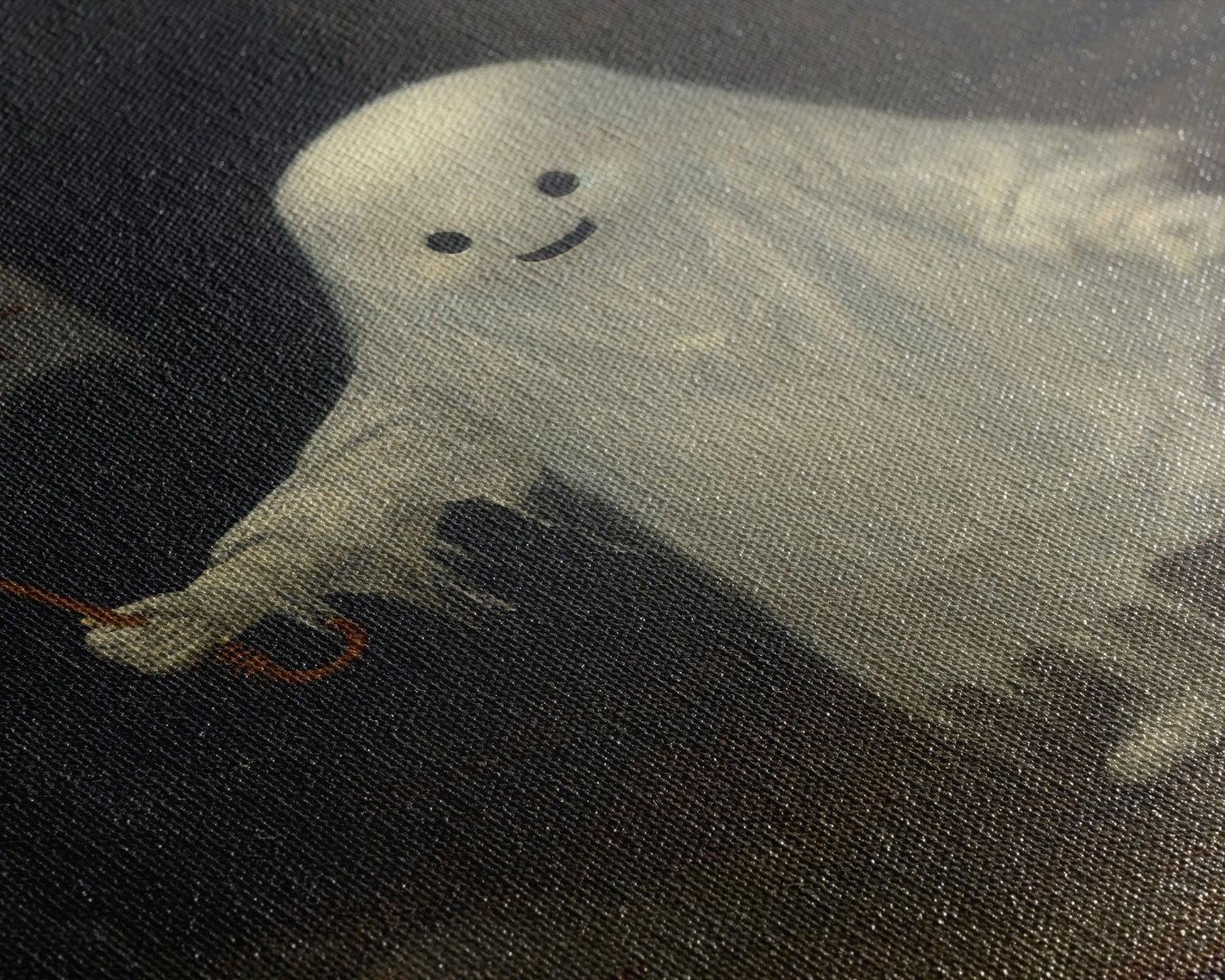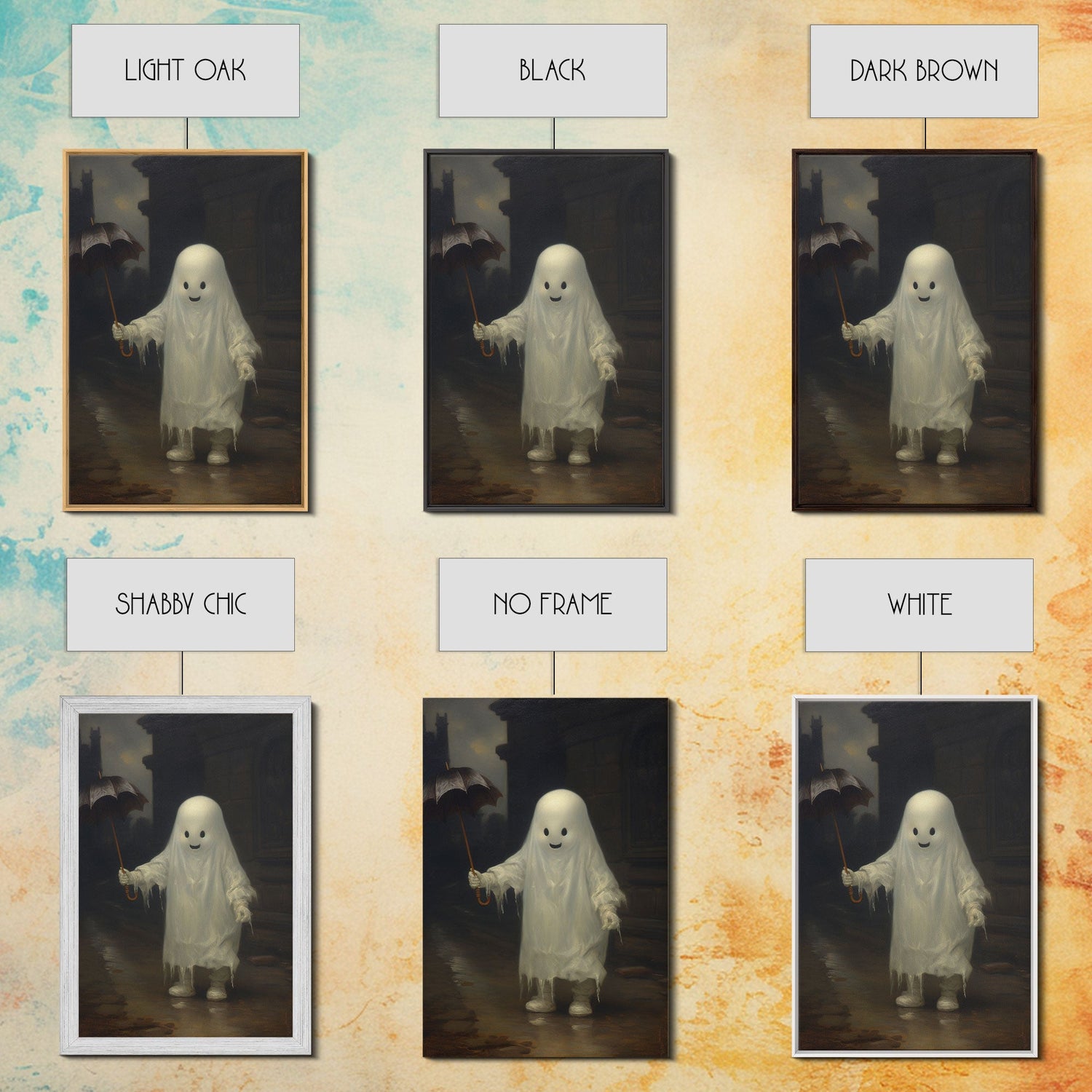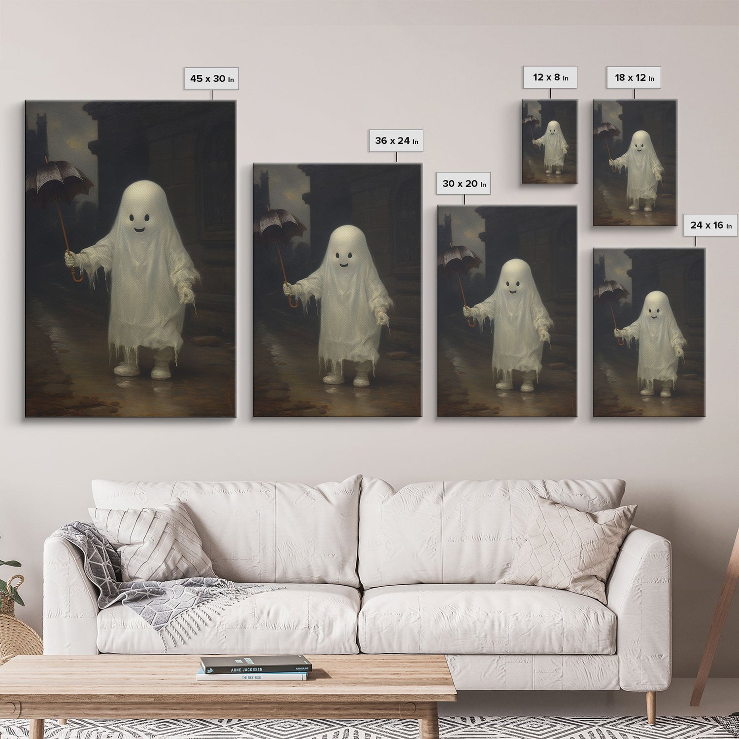 Cute Ghost Painting, Ghost In The Rain, Vintage Canvas, Art Canvas Print, Dark Academia, Haunting Ghost, Cute Halloween Decor