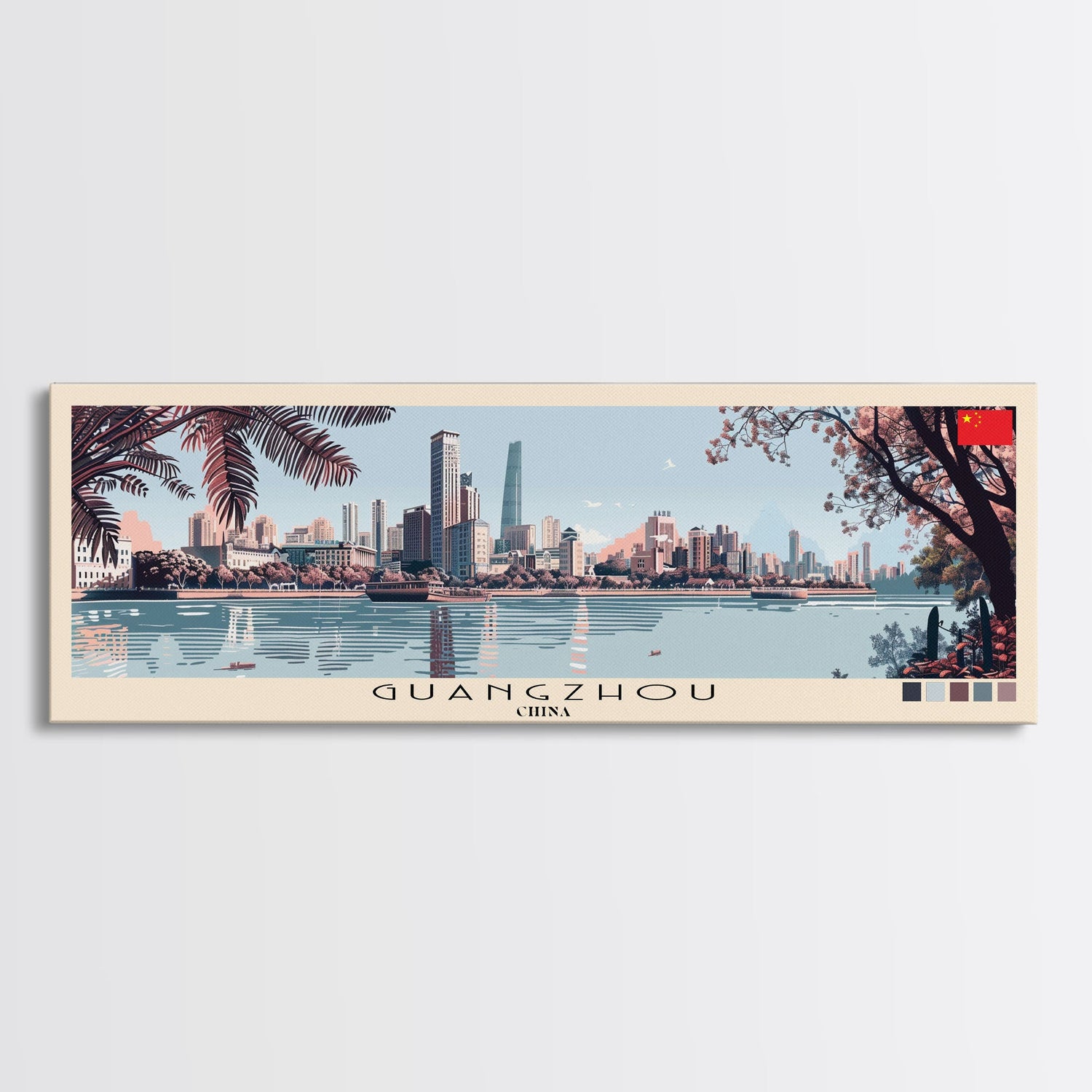 Guangzhou, China Panoramic Canvas Print, Guangzhou, China Painting, China Art, Guangzhou Travel Poster, Travel Art, Guest Room Painting