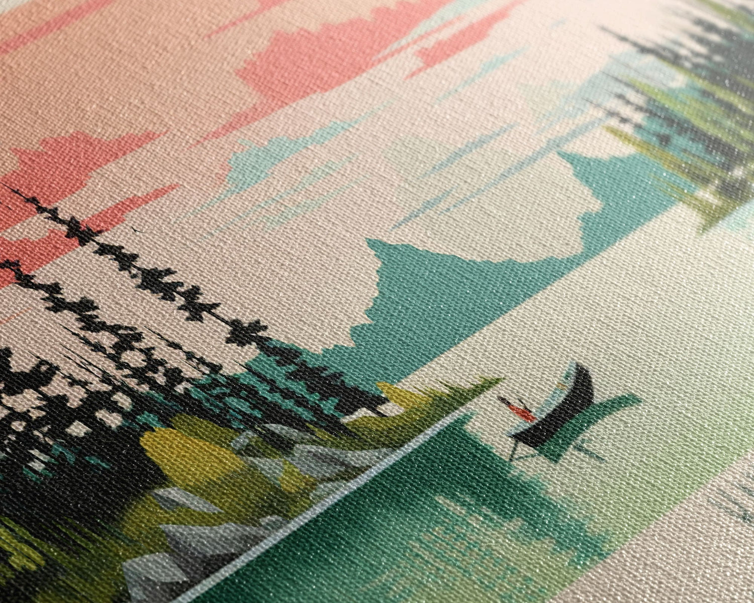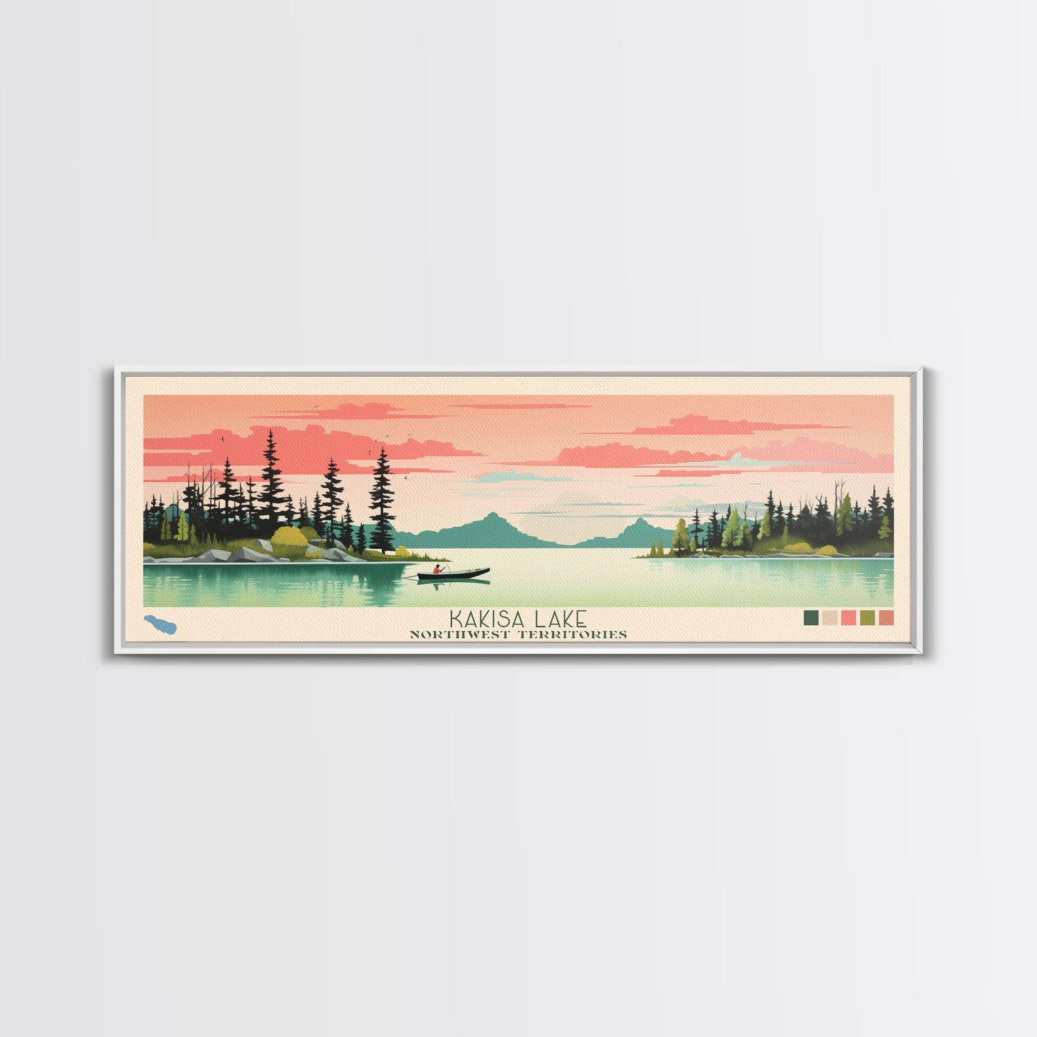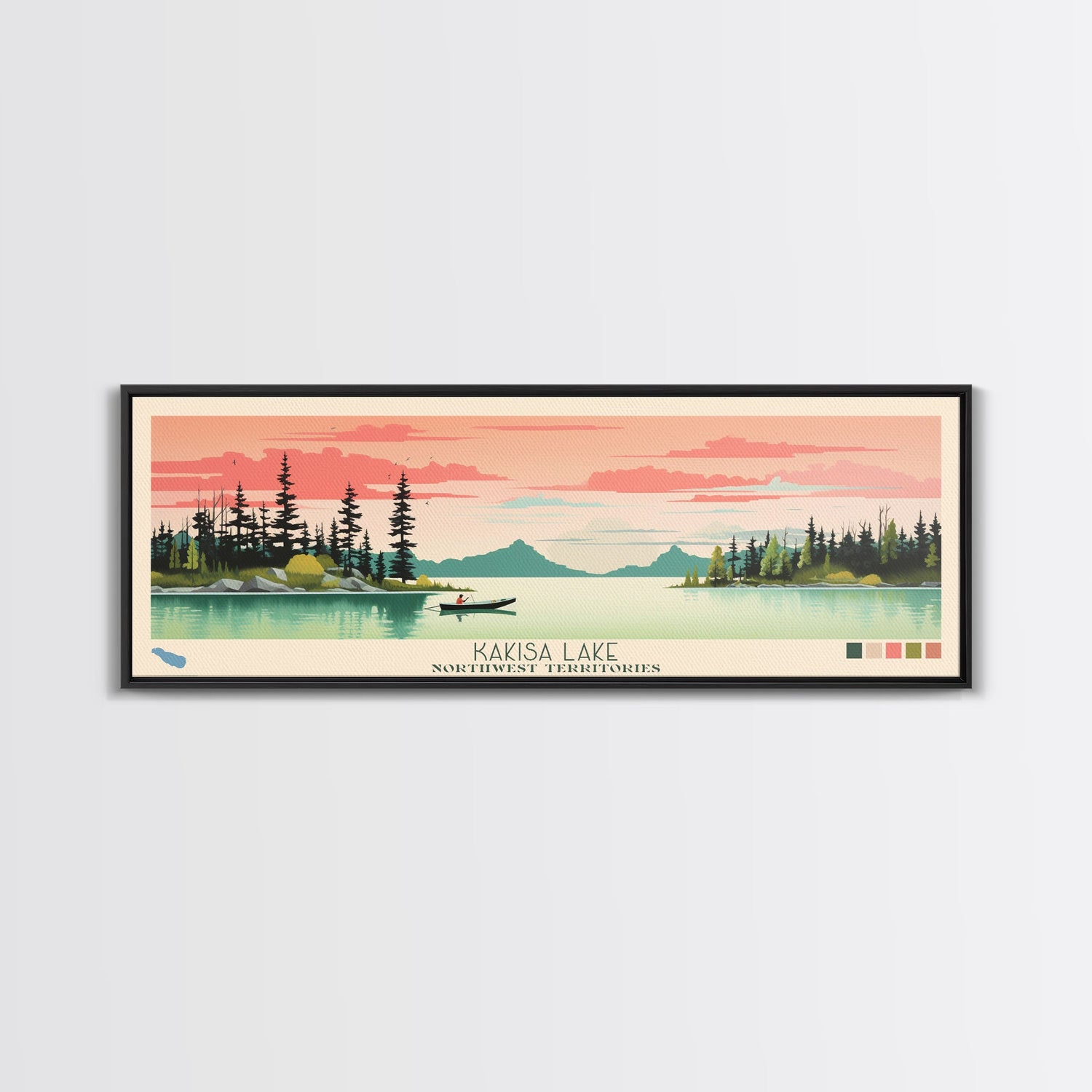 Kakisa Lake Northwest Territories Framed Canvas Print, Panoramic Art, Midcentury Modern, Pop Art, Living Room Decor, Travel Poster, Lake House Decor