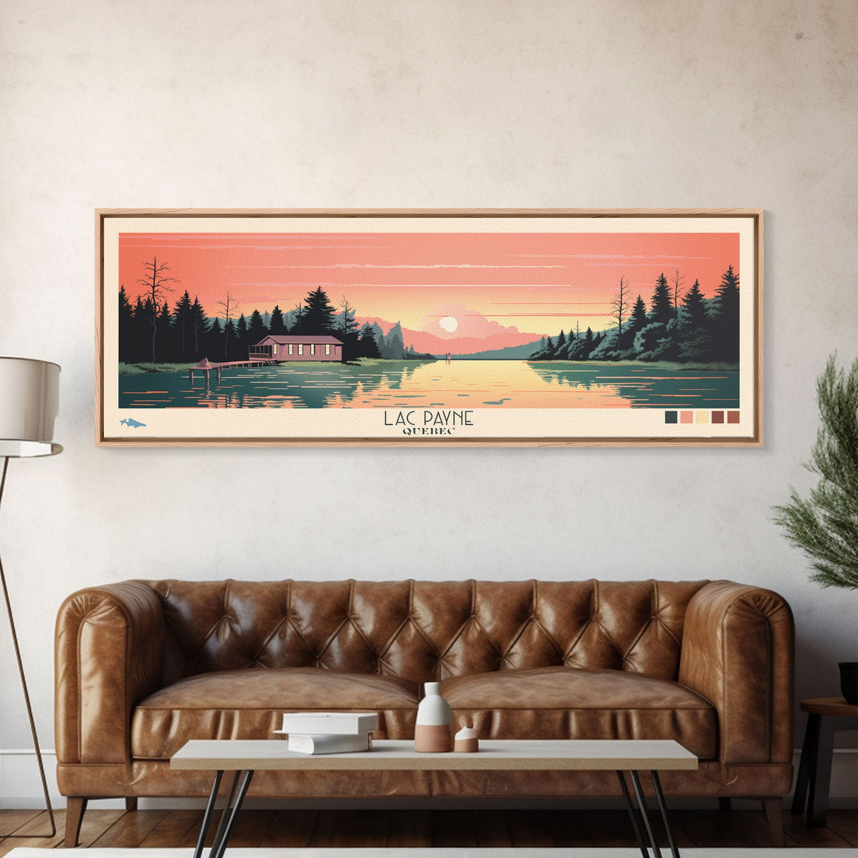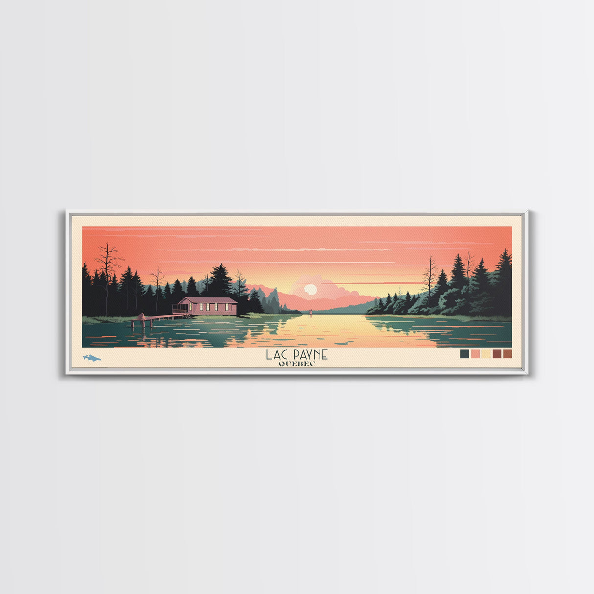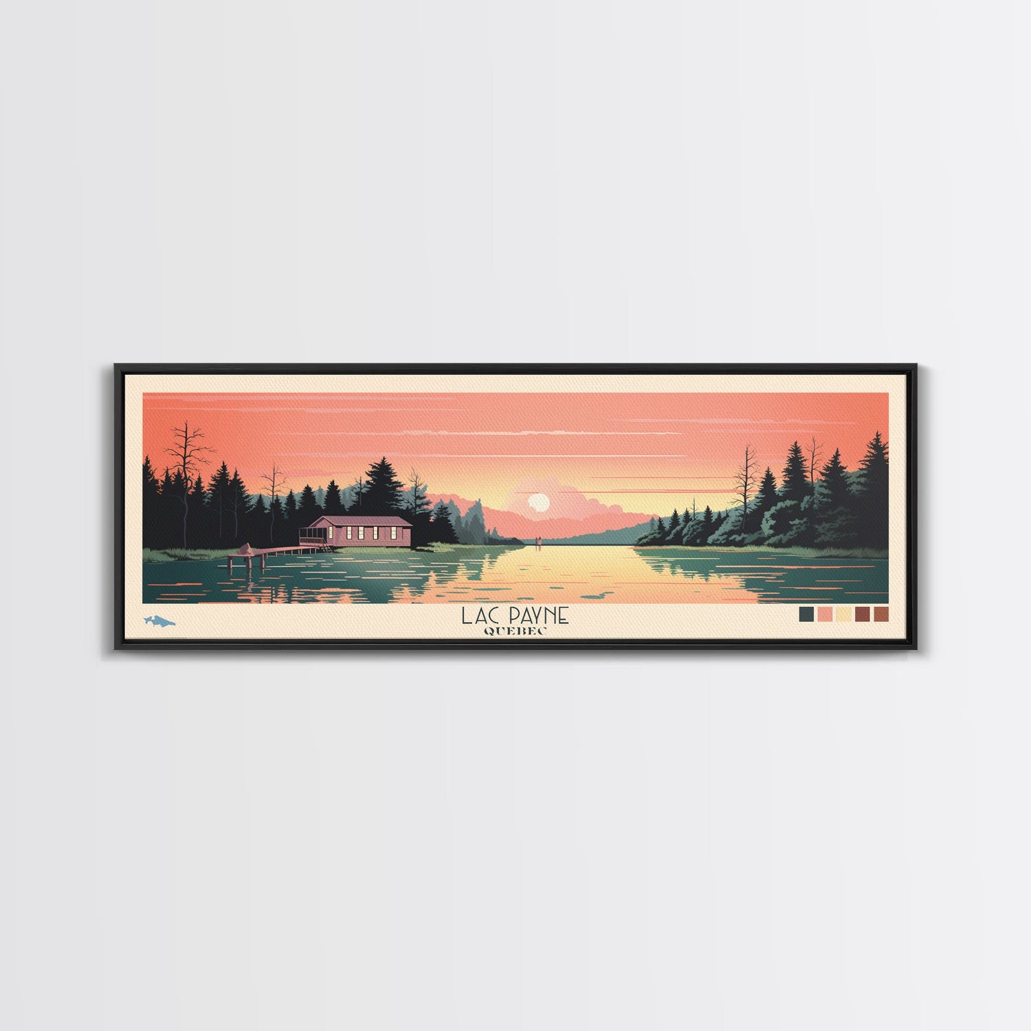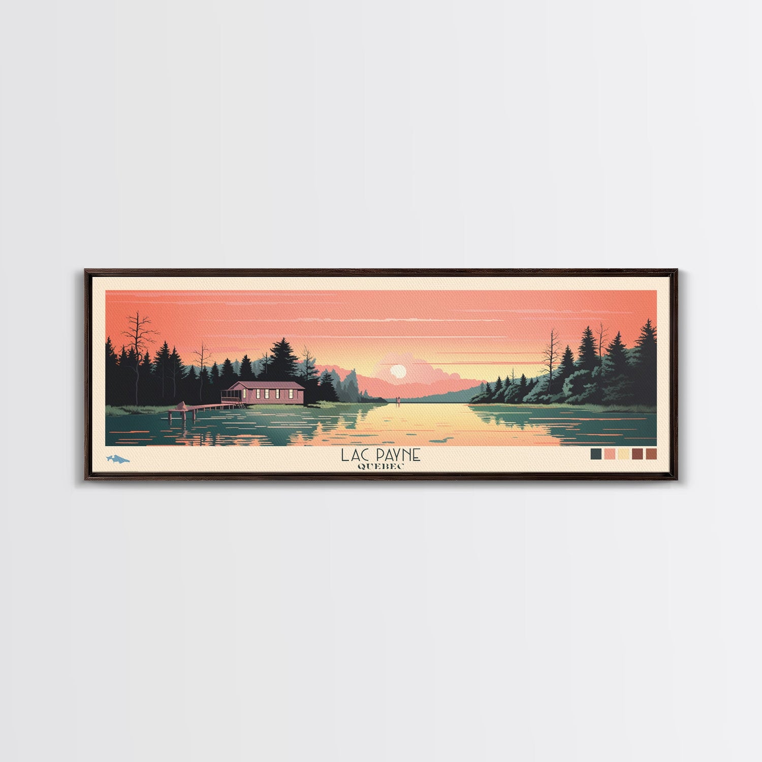 Lac Payne Quebec Framed Canvas Print, Panoramic Wall Art, Midcentury Modern, Pop Art, Bedroom Decor, Travel Poster, Living Room Art