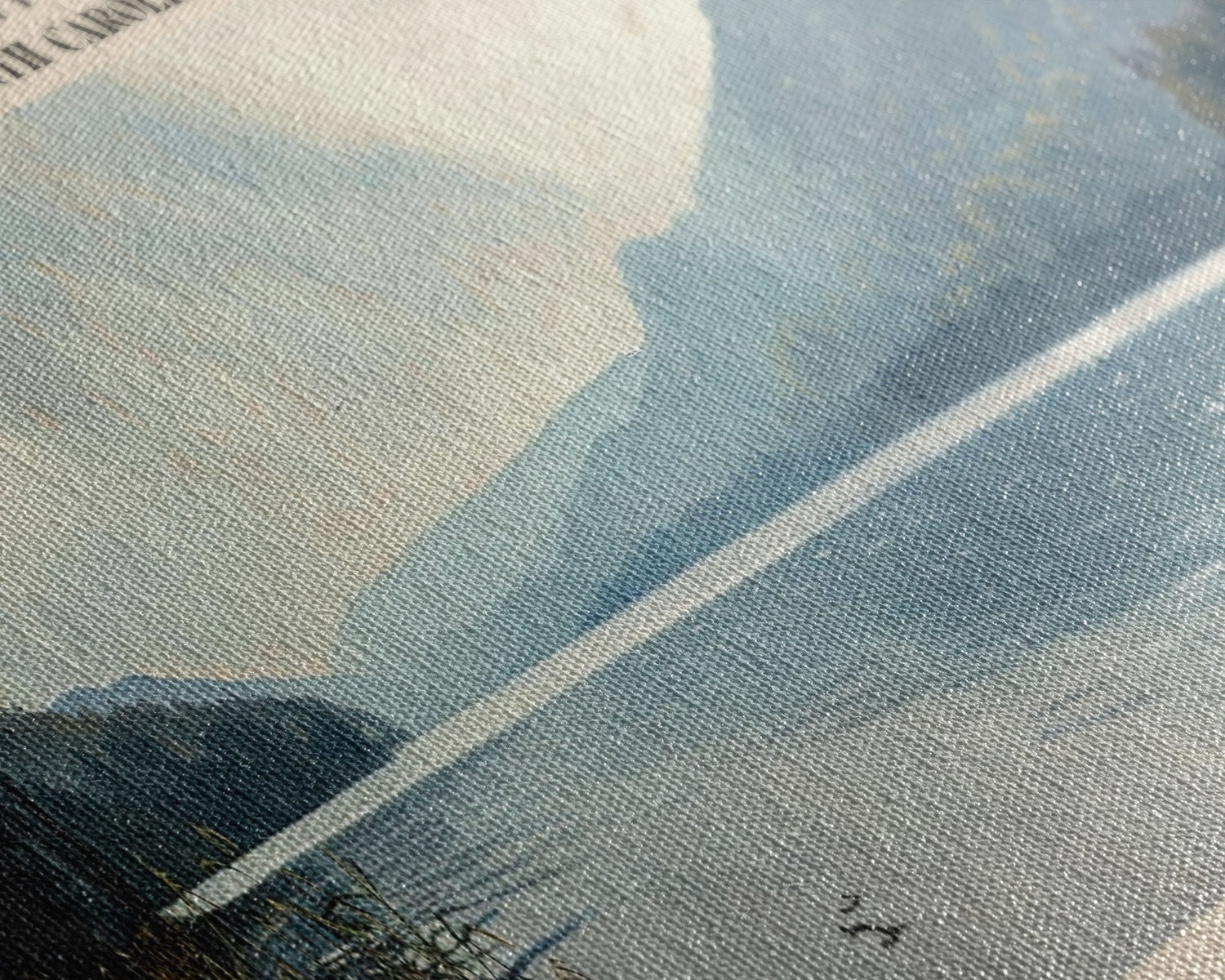 Most of our canvases are made in the USA, with the exception of canvases ordered with the light oak unstained frames, and any large canvases (24x48, 30x60, 16x48 and 20x60) ordered WITH a frame. These are temporarily made in and shipped from Europe, while we try to find a more consistent supplier in the USA.