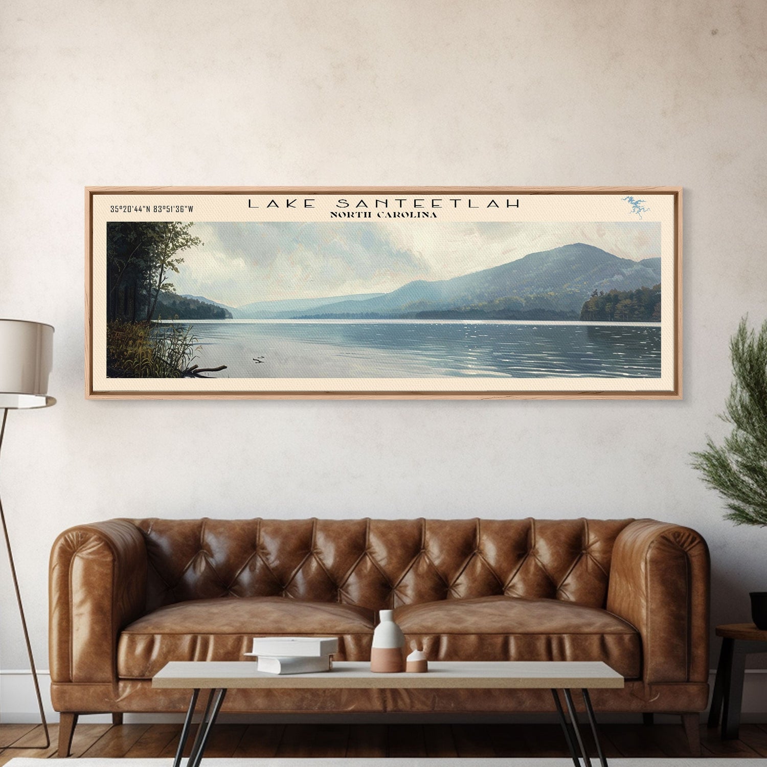 Lake Santeetlah, Boho Art, Serene Landscape, Travel Poster Art, Wall Art, Home Decor, Nature Scene, Lake Painting, Minimalist Art, Modern Art, Travel Print, Framed Canvas Print, Lake House Decor, Panoramic Print