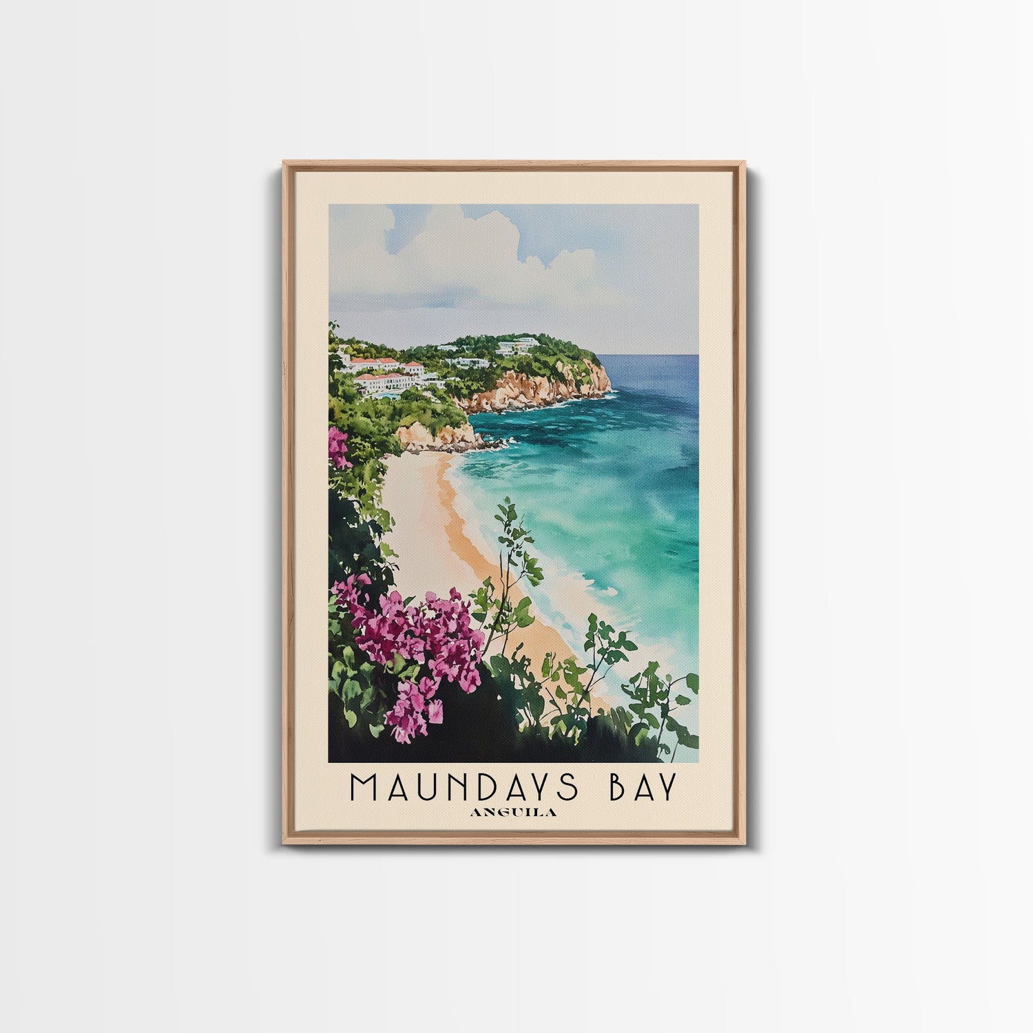Maundays Bay, Anguila Watercolor Beach Print, Vacation Gift, Anguila Wall Art, Framed Canvas Print, Framed Beach Painting