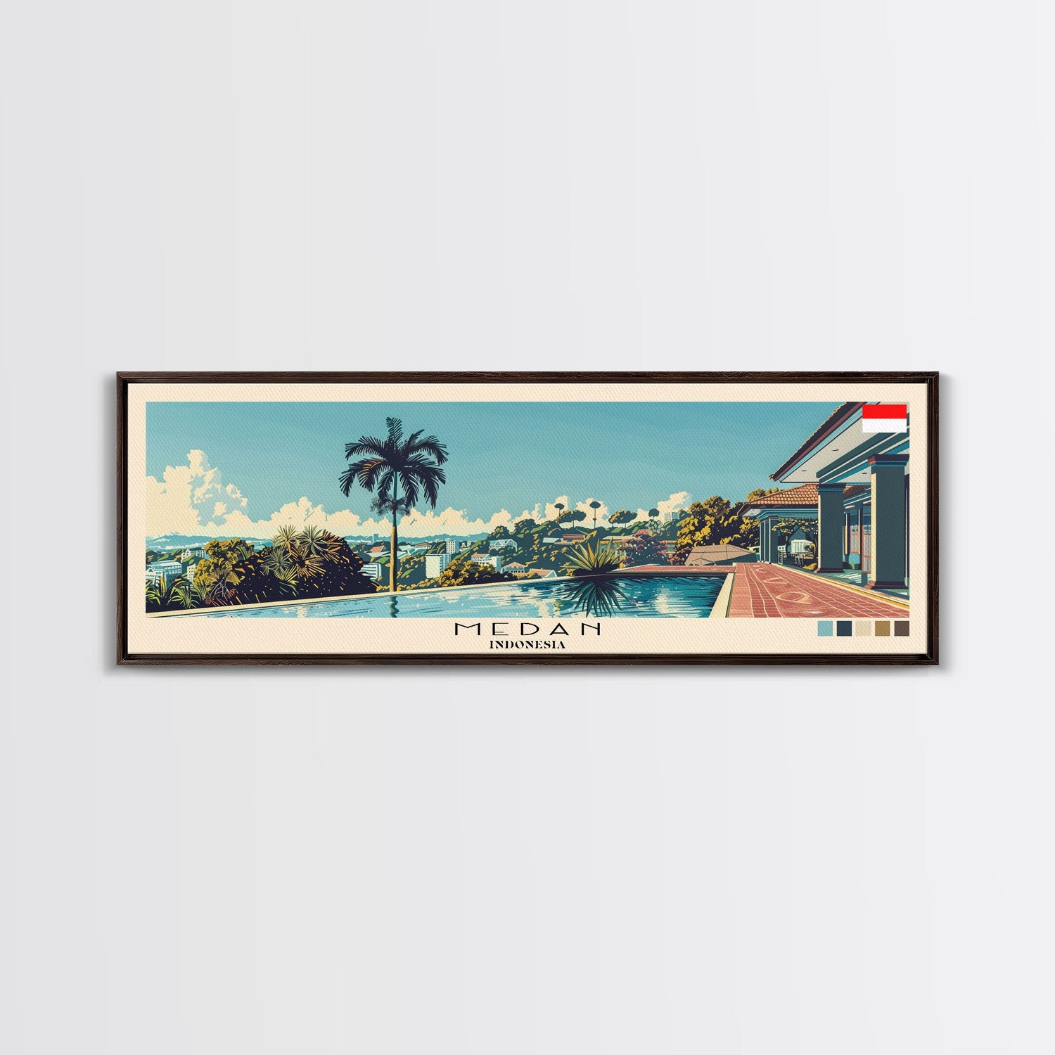 Medan, Indonesia Panoramic Canvas Print, Medan, Indonesia Painting, Indonesia Art, Medan Travel Poster, Travel Art, Guest Room Painting