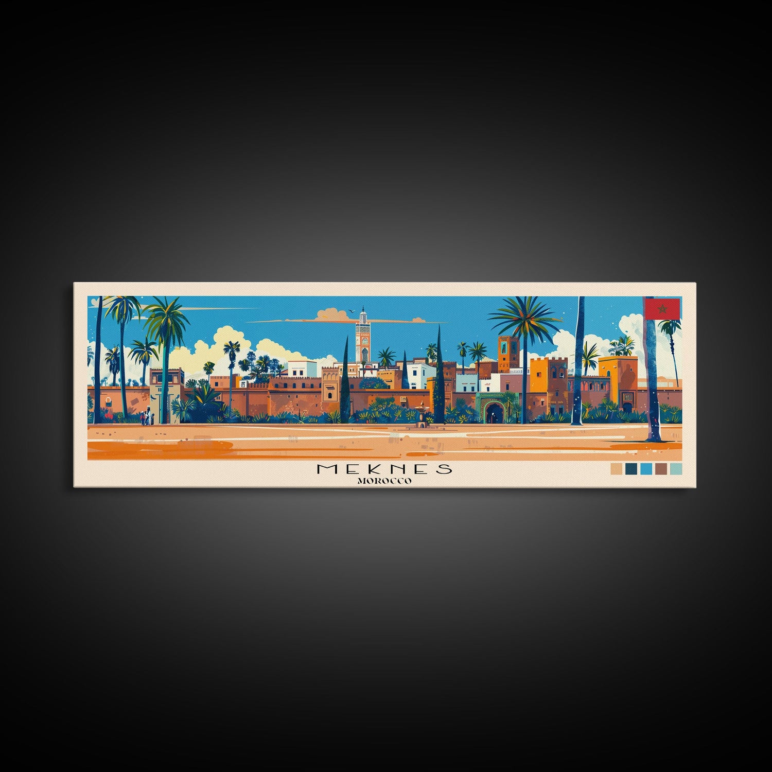 Meknes, Morocco Panoramic Canvas Print, Meknes, Morocco Painting, Morocco Art, Meknes Travel Poster, Travel Art, Guest Room Painting