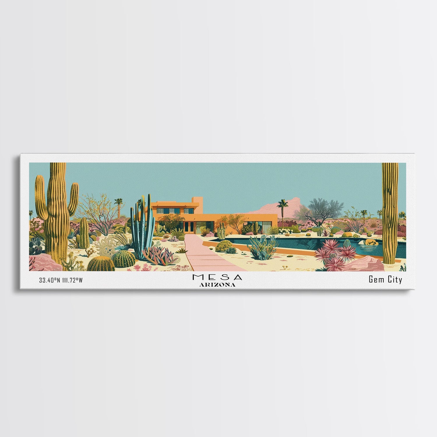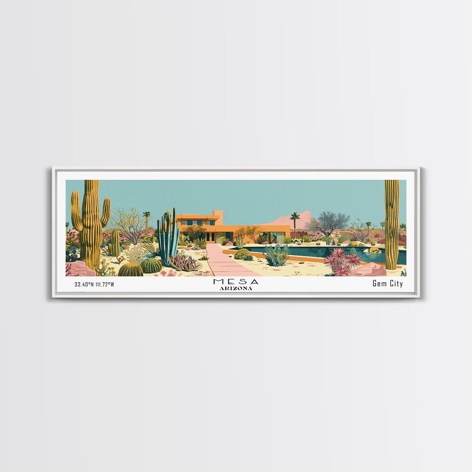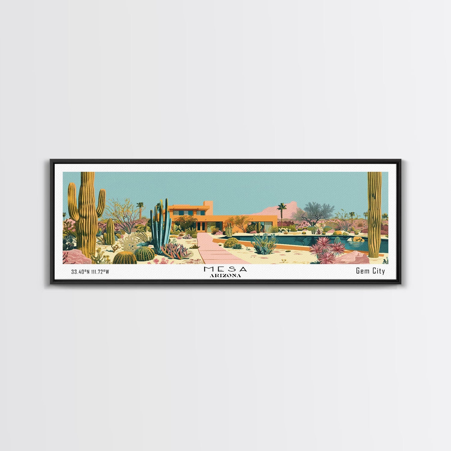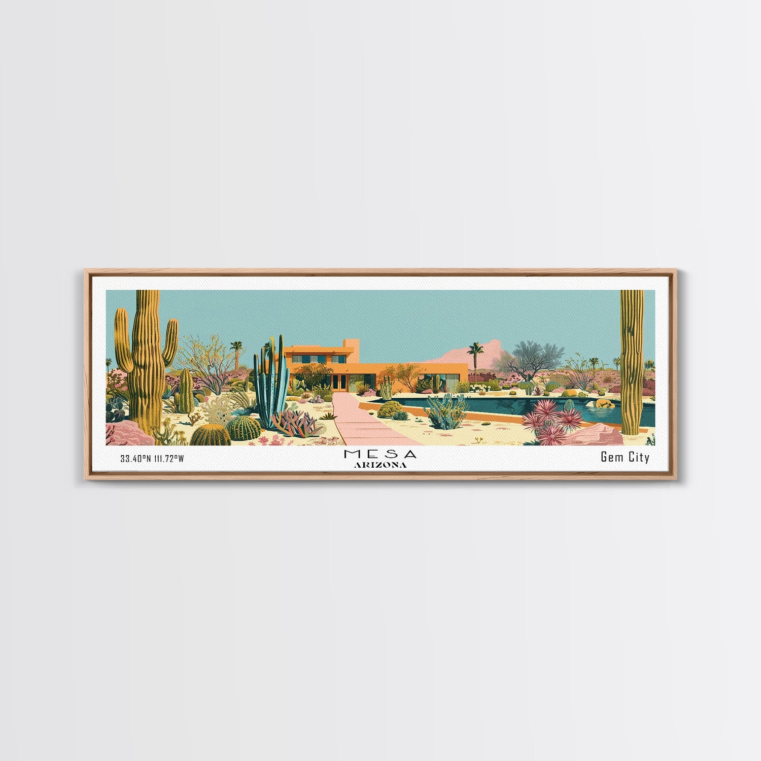 Mesa Arizona Panoramic Painting, Mid Century Modern Framed Canvas Print, Retro Pop Art Travel Poster, Office Wall Art