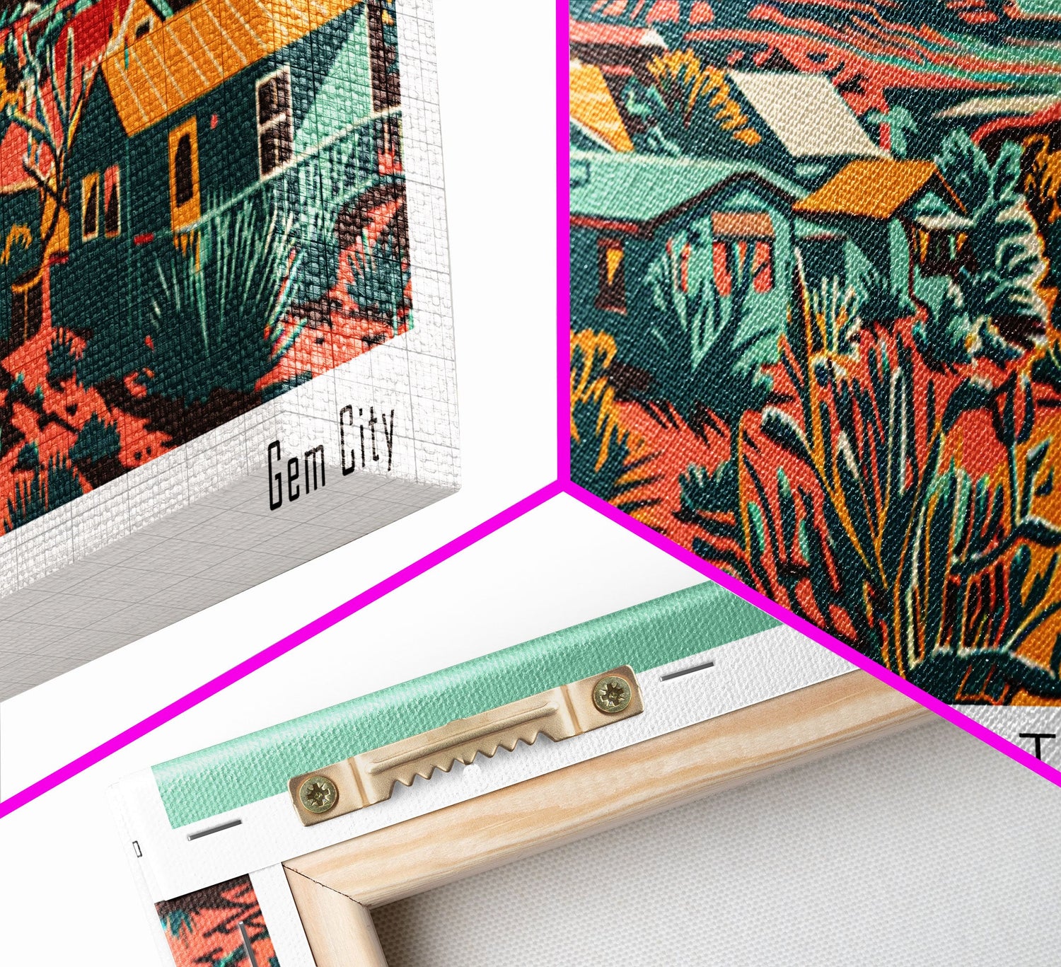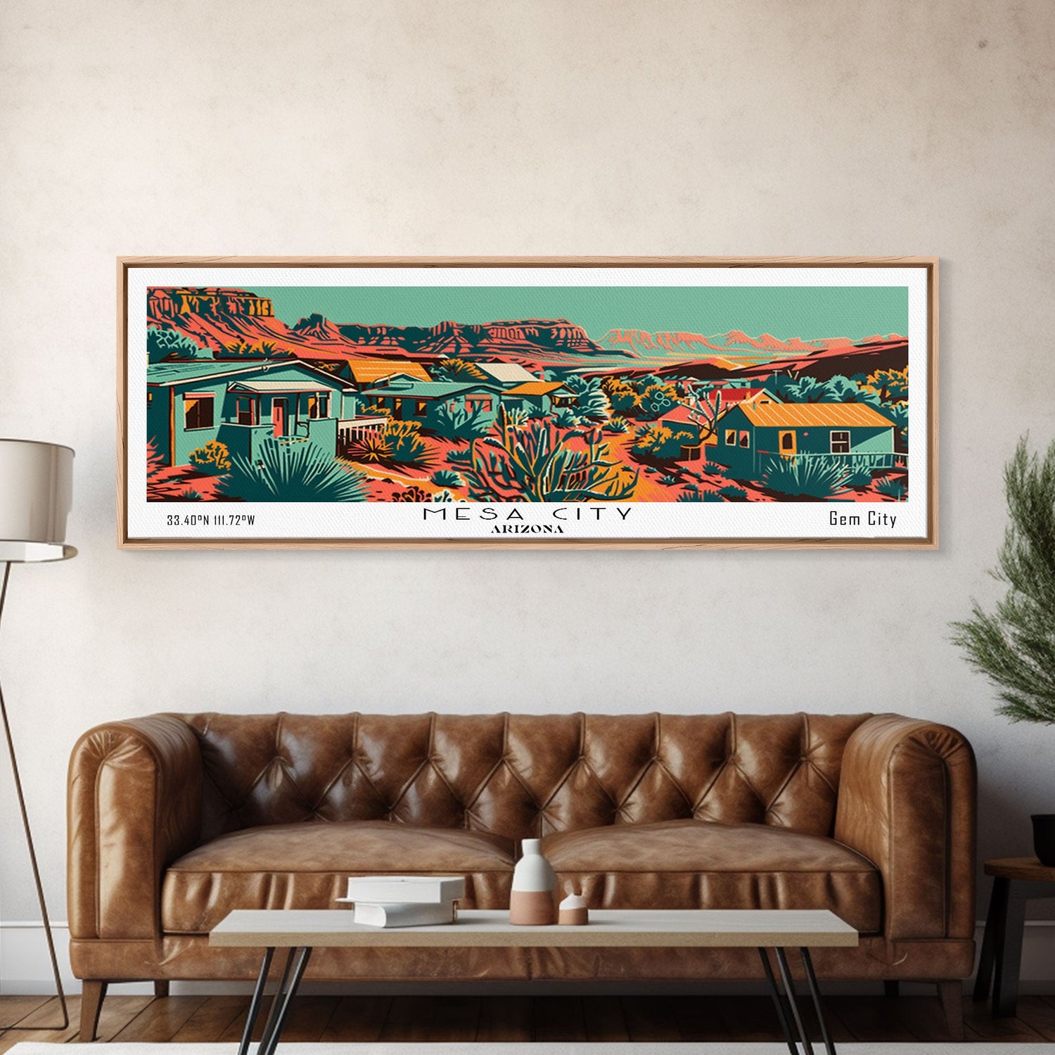 Mesa Arizona Panoramic Travel Poster Framed Canvas Print, Mid Century Modern Art, Pop Art Style, Wall Art, Home Decor, Office Wall Art