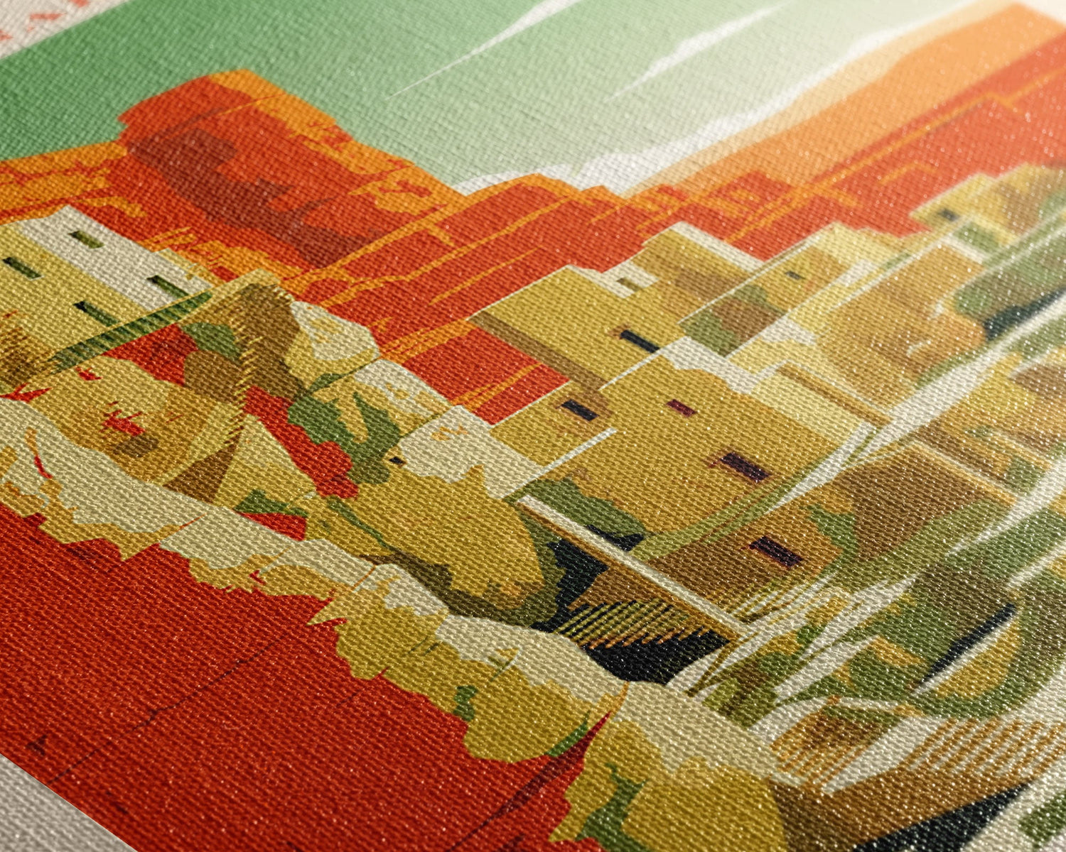 Most of our canvases are made in the USA, with the exception of canvases ordered with the light oak unstained frames, and any large canvases (24x48, 30x60, 16x48 and 20x60) ordered WITH a frame. These are temporarily made in and shipped from Europe, while we try to find a more consistent supplier in the USA.