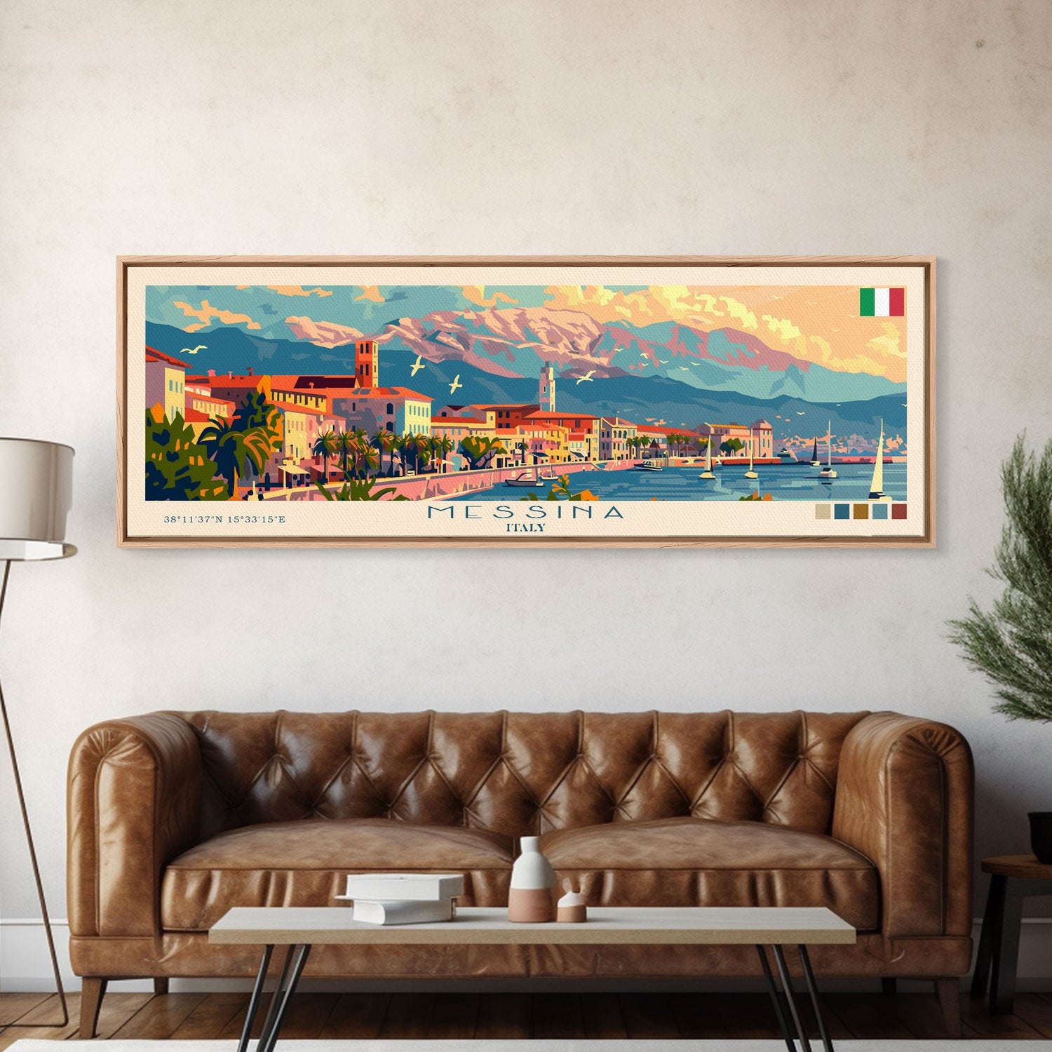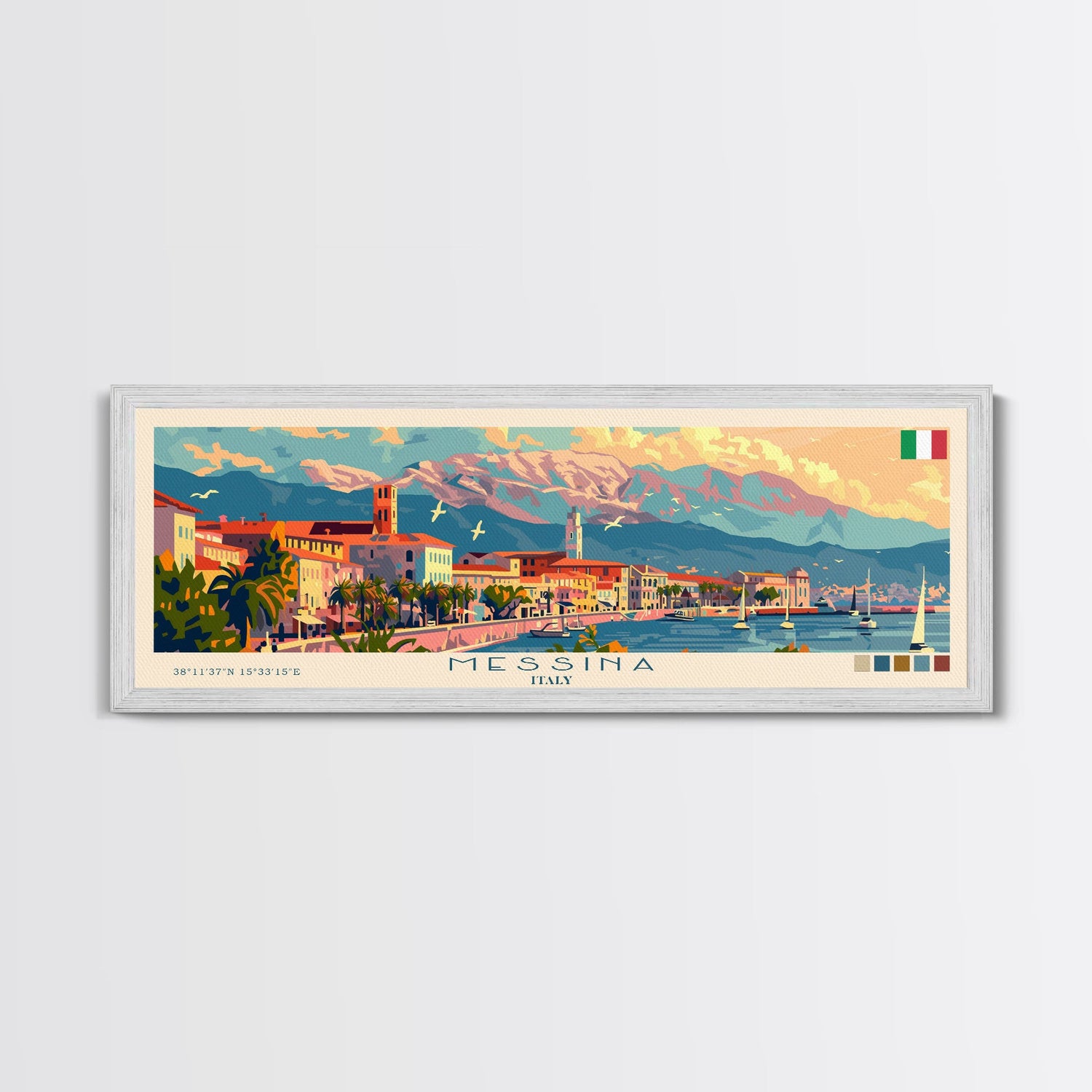 Messina Italy Travel Print Wall Art, Panoramic City Art, Travel Art, Wall Decor, Vacation Gift, Framed Canvas Print Or Metal Art
