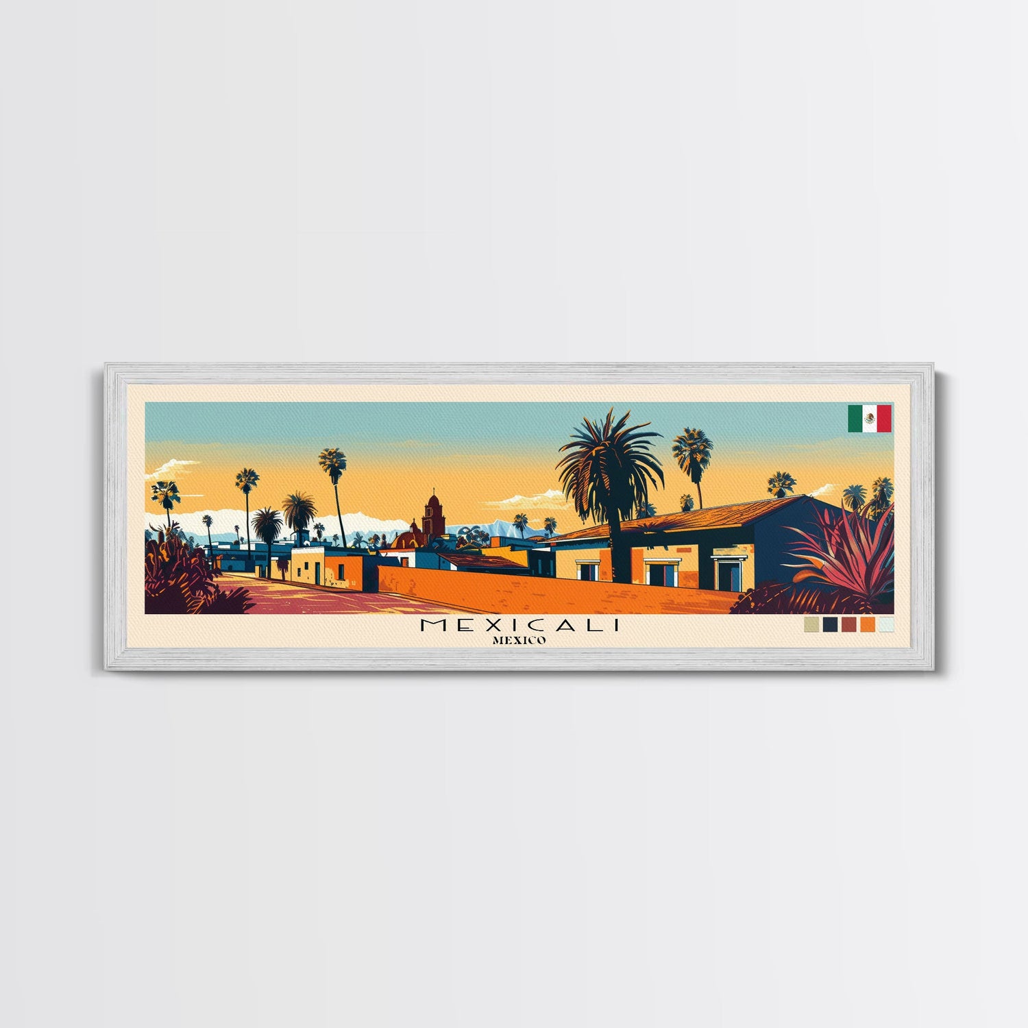 Mexicali, Mexico Panoramic Canvas Print, Mexicali, Mexico Painting, Mexico Art, Mexicali Travel Poster, Travel Art, Guest Room Painting