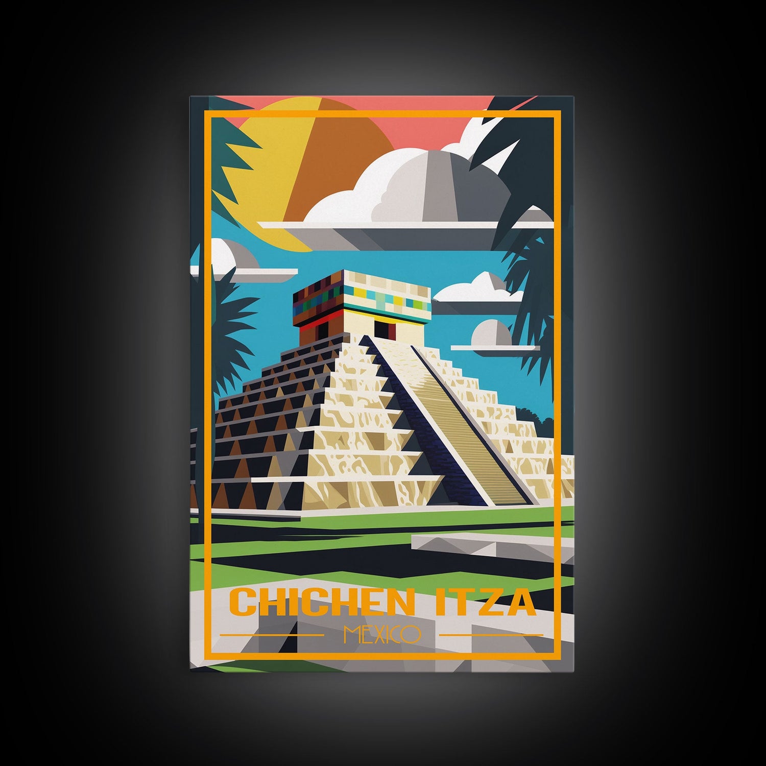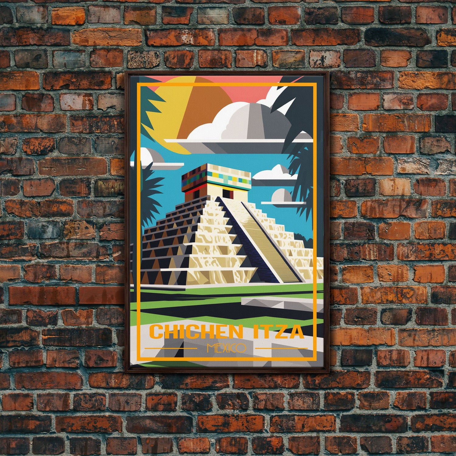 Mexico Travel Poster, Chichen Itza Ruins, South America, Yucatan, Travel Wall Print, Travel Poster, Travel Wall Art, Canvas Wall Print
