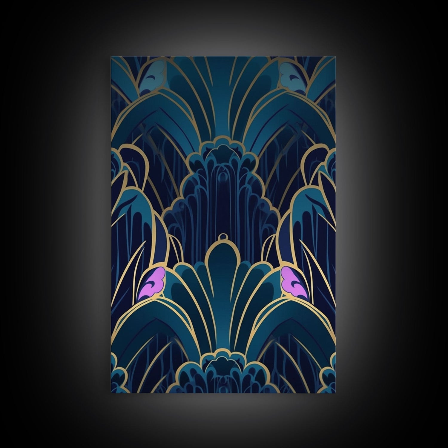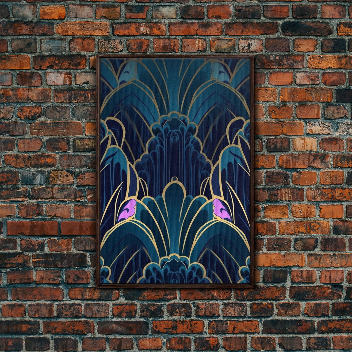 Midcentury Modern Wall art, Framed Canvas Print, Art Deco, Patterns art, Abstract nature, Blue & gold art, Lines art, Colorful painting