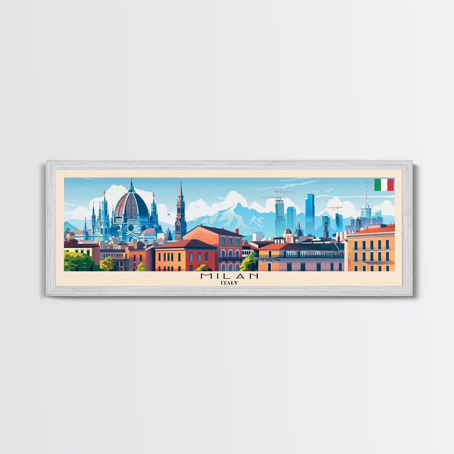 Milan Italy Panoramic Travel Poster, Framed Canvas Print or Metal Wall Art, Travel Art, Home Decor, Panoramic Painting, Midcentury Art