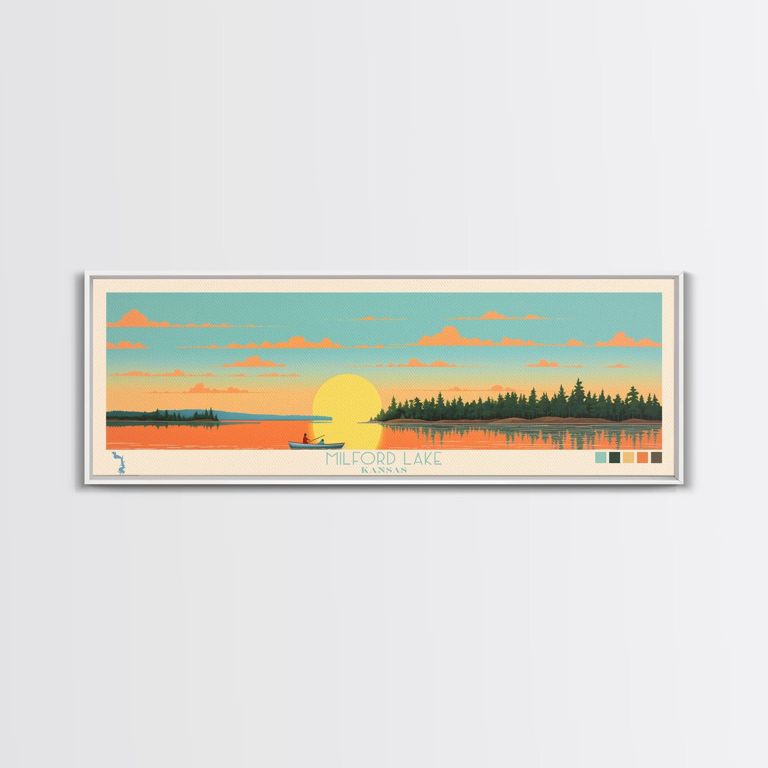 Milford Lake, Kansas Panoramic Wall Art Framed Canvas Print, Midcentury Modern, Pop Art, Home Decor, Travel Poster, Living Room Art