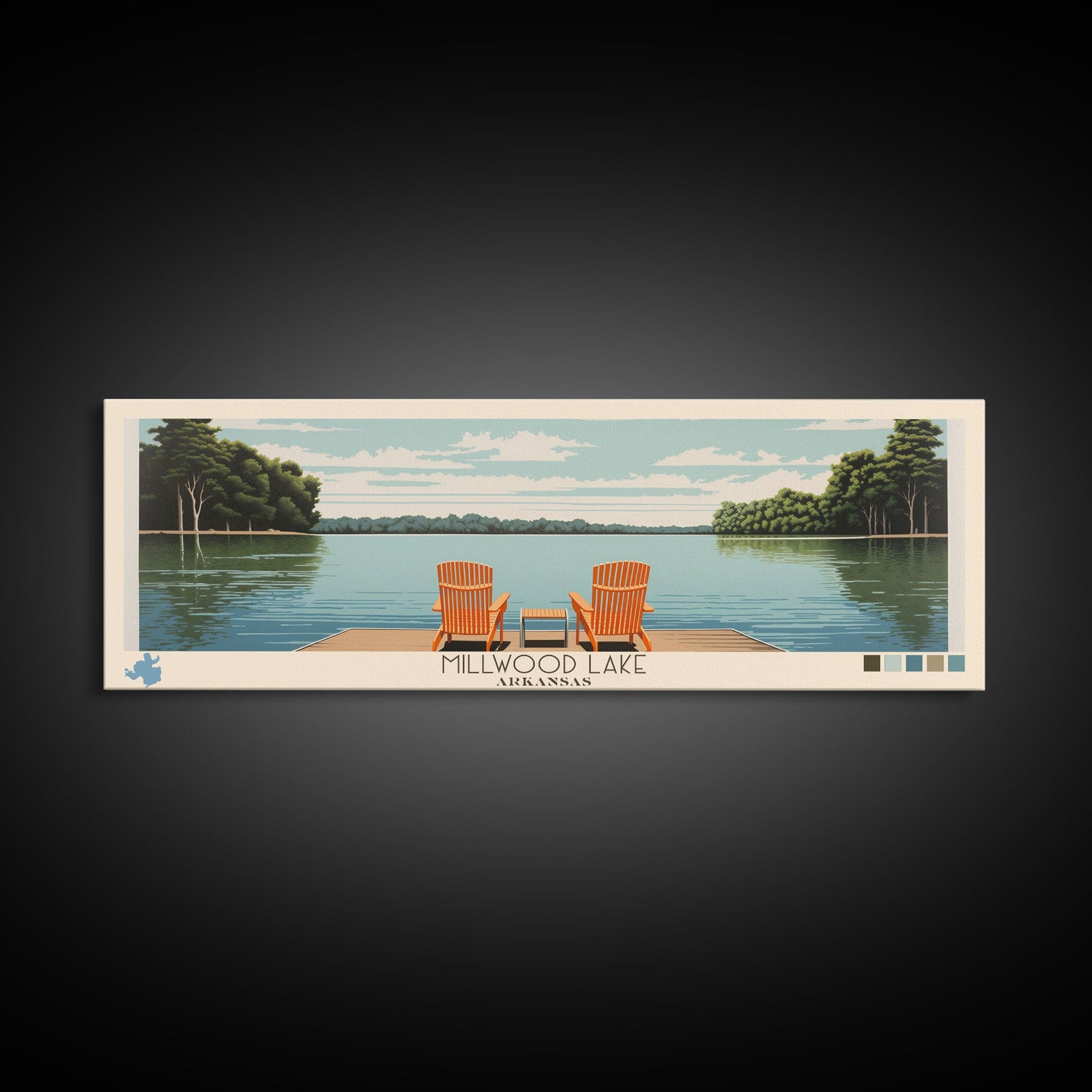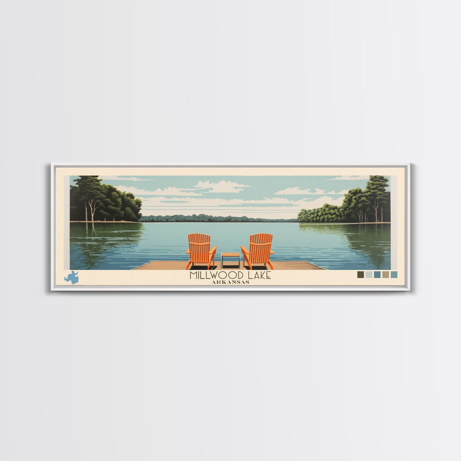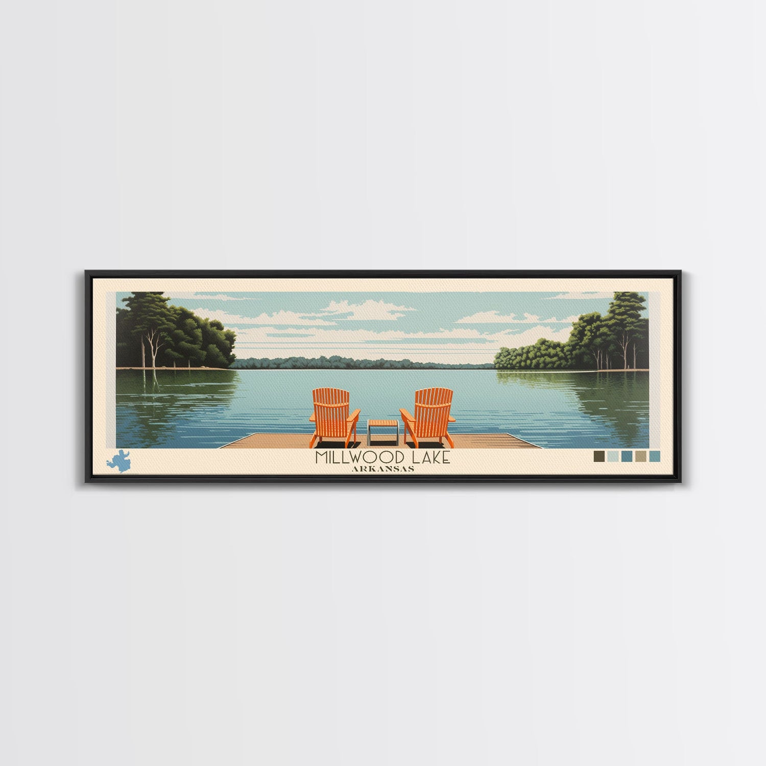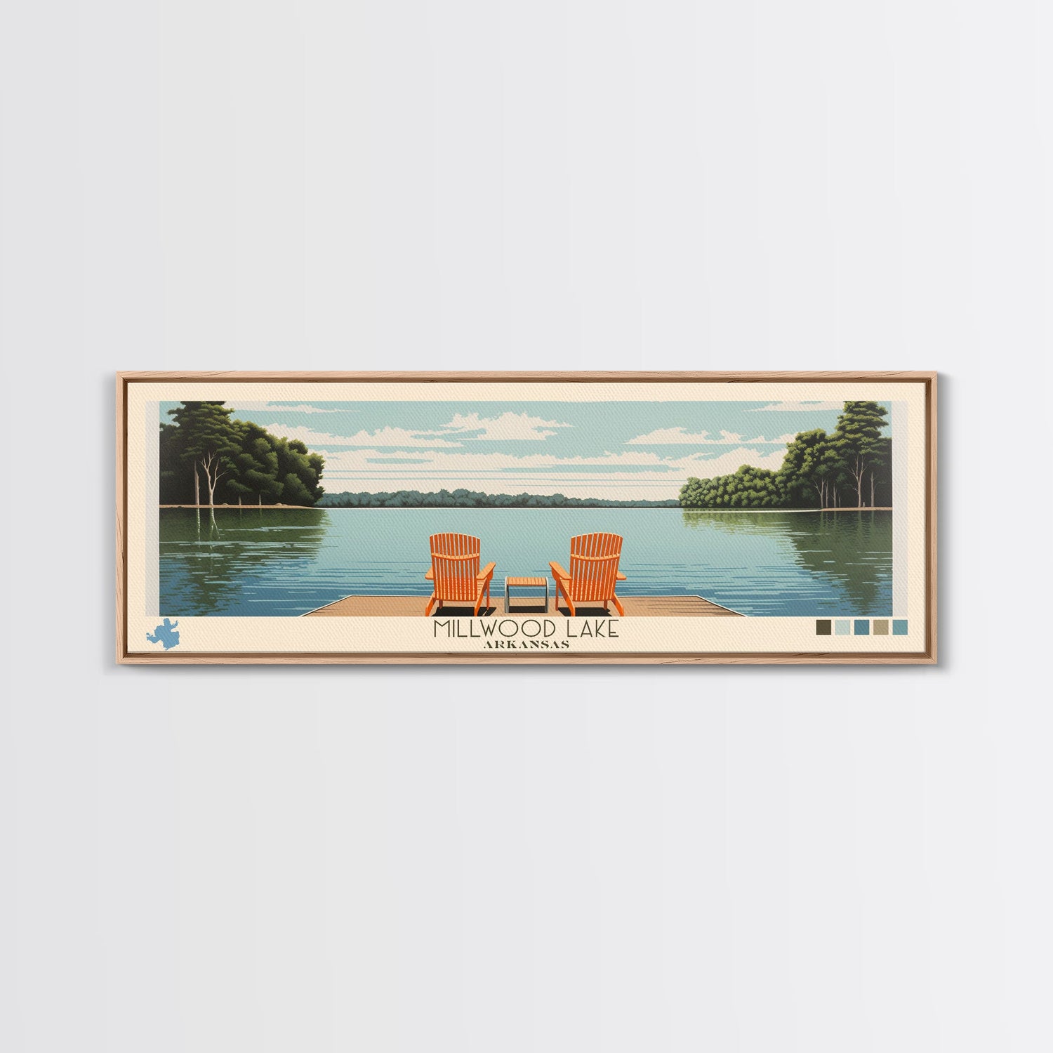 Millwood Lake, Arkansas Framed Canvas Print, Panoramic Wall Art, Midcentury Modern, Pop Art, Home Decor, Travel Poster, Bedroom Art