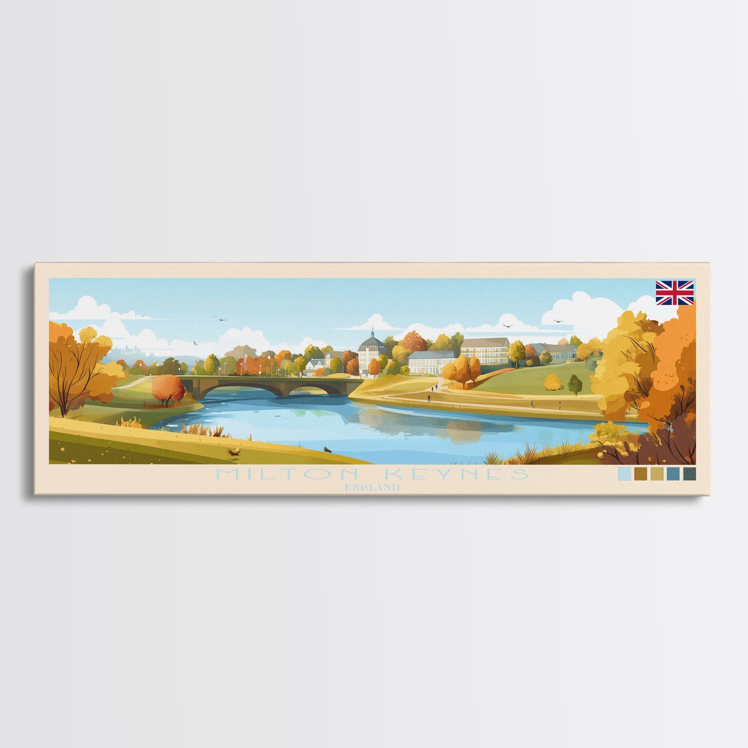 Milton Keynes, England Panoramic Travel Poster Canvas Print, Milton Keynes, England Painting, England Art, Milton Keynes Panoramic Travel Art, Travel Painting
