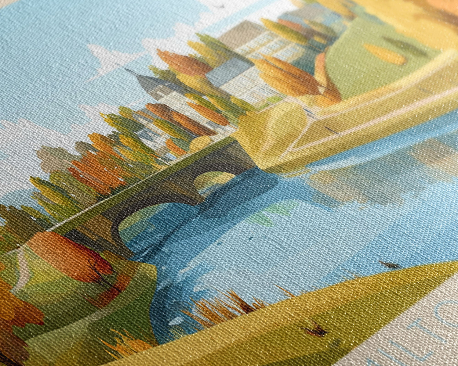 Most of our canvases are made in the USA, with the exception of canvases ordered with the light oak unstained frames, and any large canvases (24x48, 30x60, 16x48 and 20x60) ordered WITH a frame. These are temporarily made in and shipped from Europe, while we try to find a more consistent supplier in the USA.